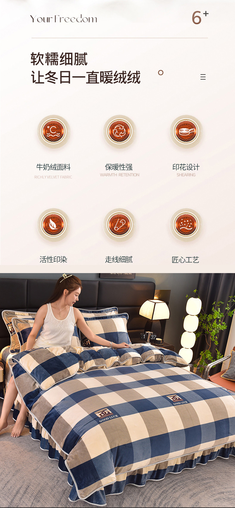 芯诗曼2025新款8.5斤直播热款高克重牛奶绒法莱绒水晶金貂法莱绒四件套幸运一生,幸运一生,雍容华贵