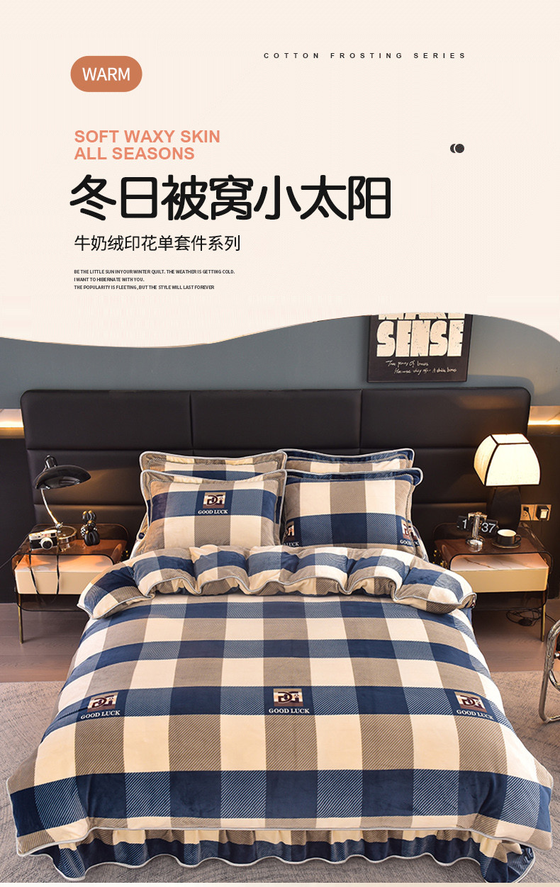 芯诗曼2025新款8.5斤直播热款高克重牛奶绒法莱绒水晶金貂法莱绒四件套花样情怀,花样情怀