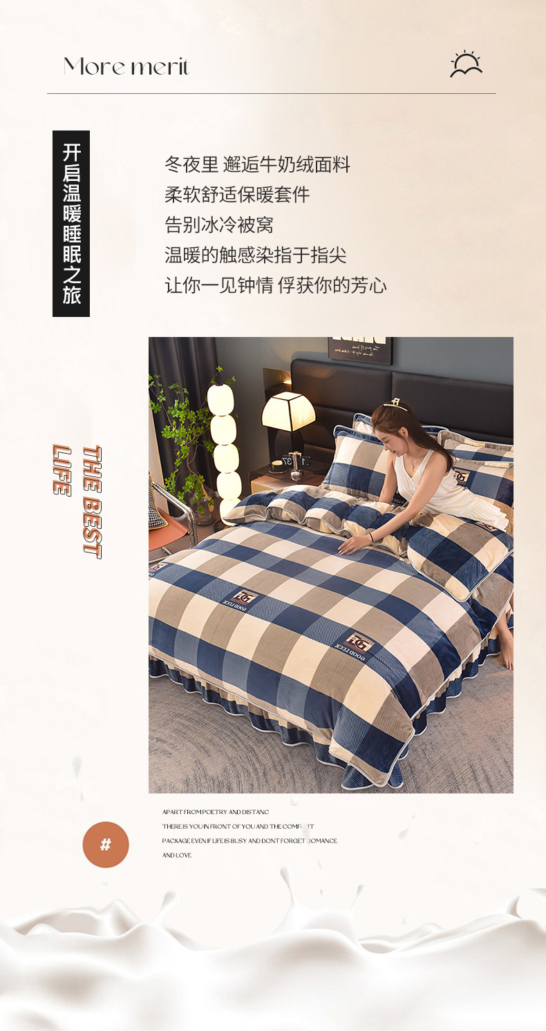 芯诗曼 2025直播高克重牛奶绒四件套法莱绒金貂貂狐保暖单被套 叶语,叶语