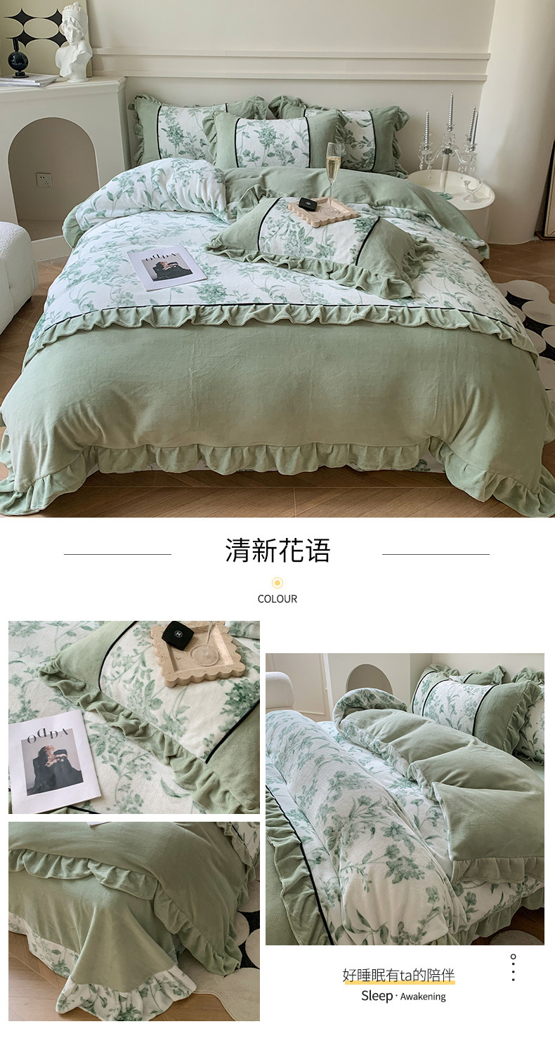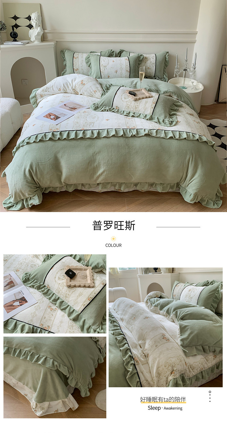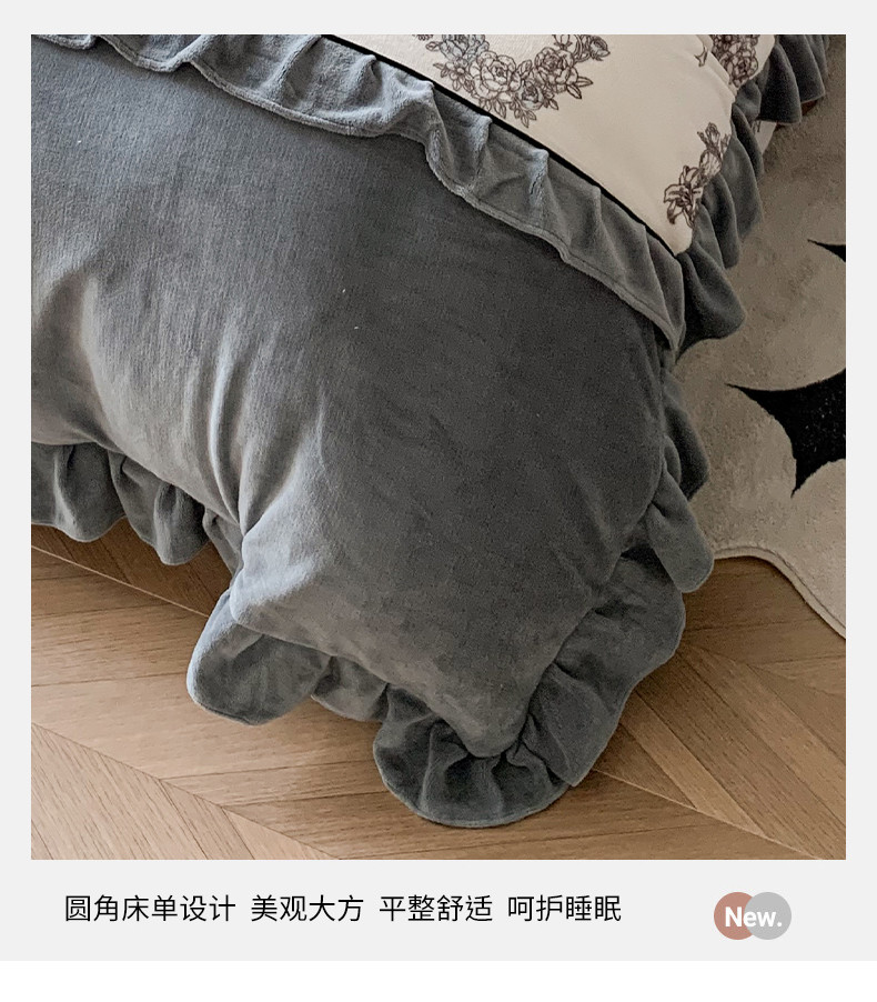 (总)吾欢心 2024新款法式复古韩版花边牛奶绒四件套