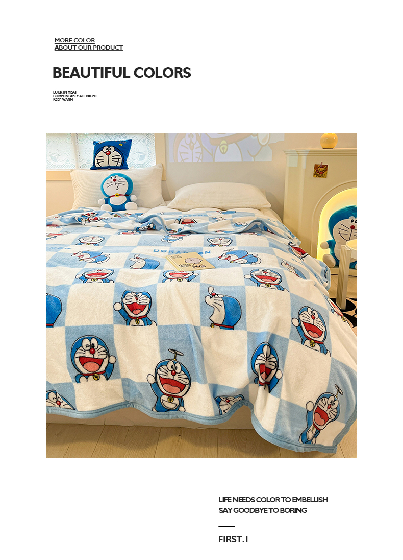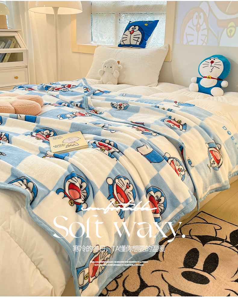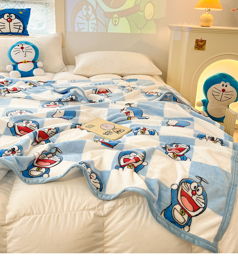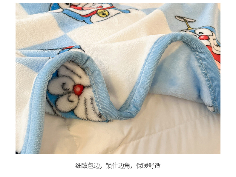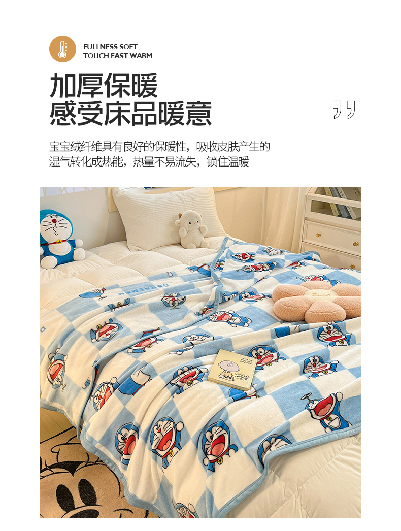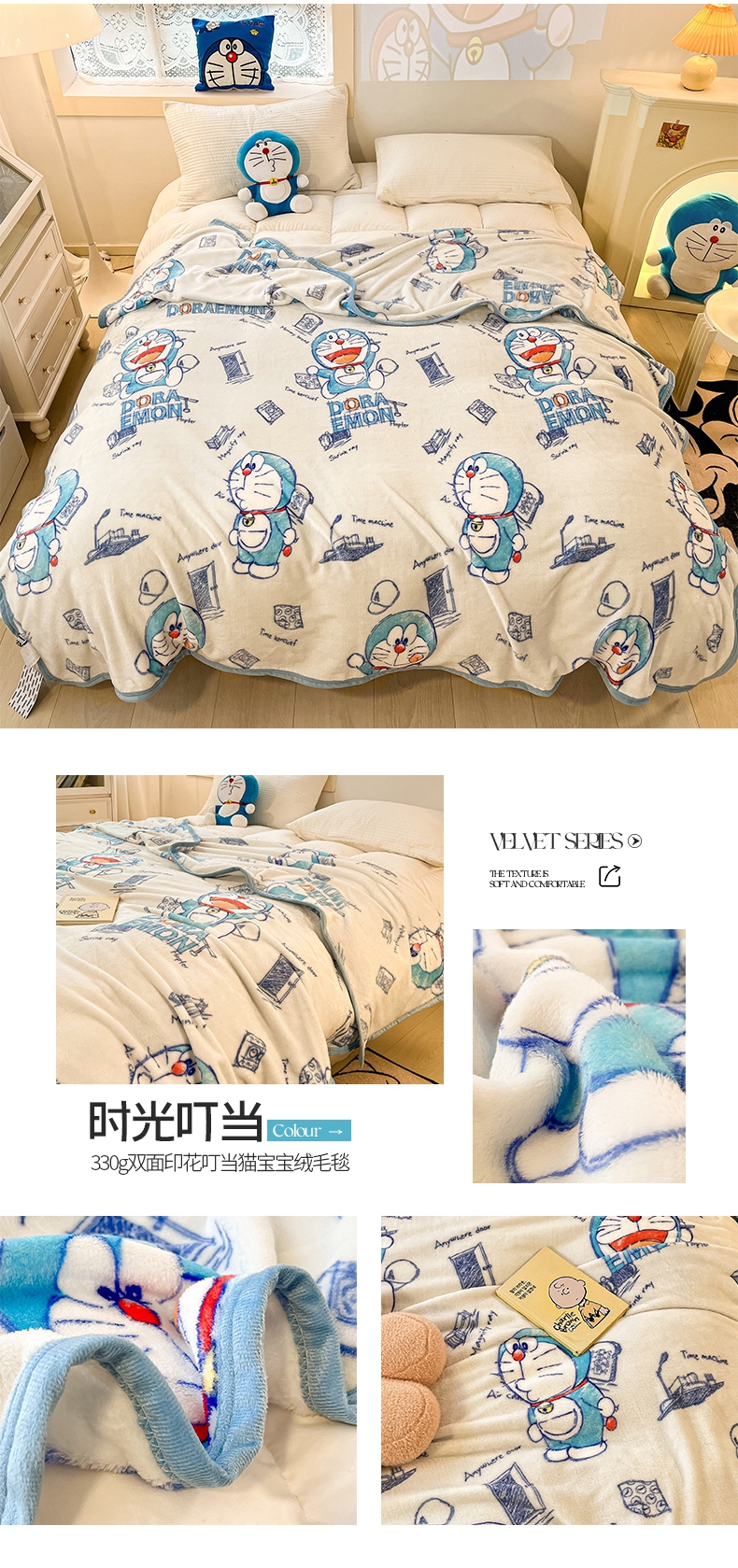 (总)桃子 2023新款330g双面印花A类叮当猫宝宝绒牛奶绒多功能四季毯子