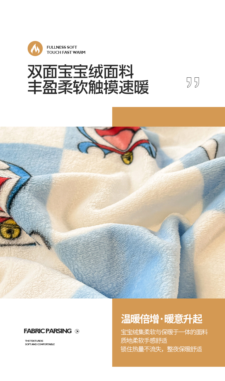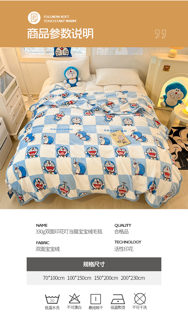 商品名称:(总)桃子 2023新款330g双面印花A类叮当猫宝宝绒牛奶绒多功能四季毯子