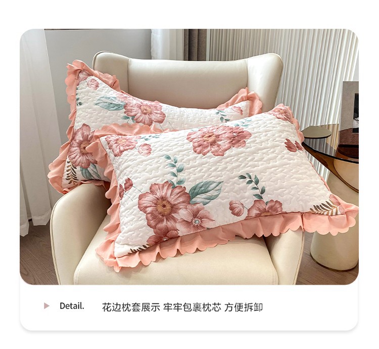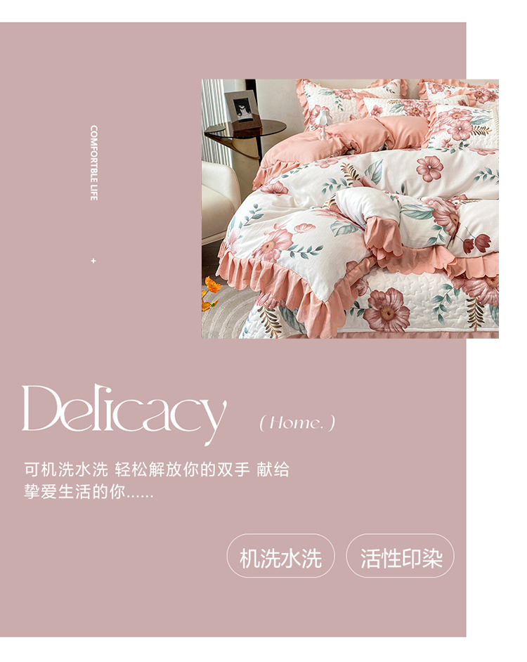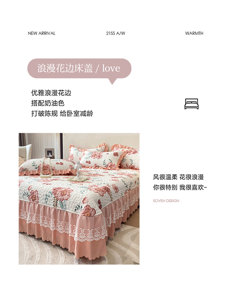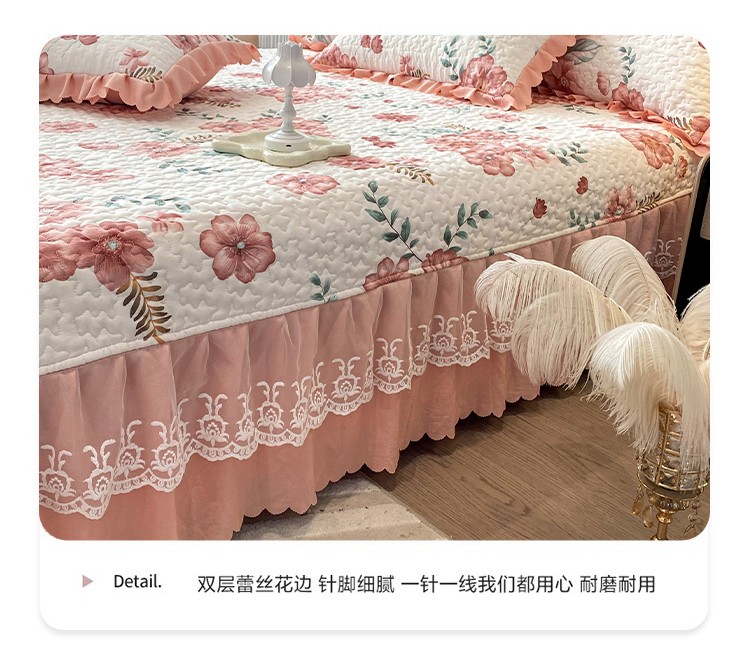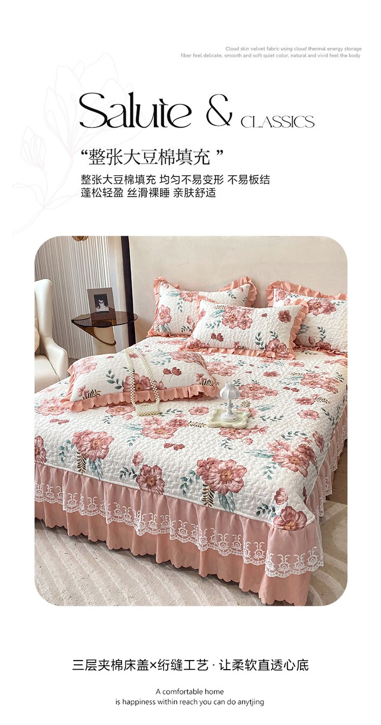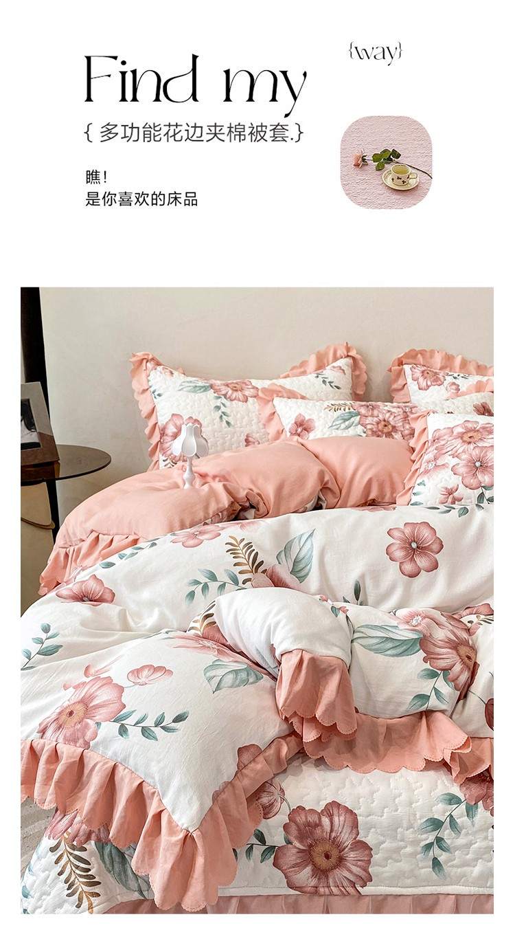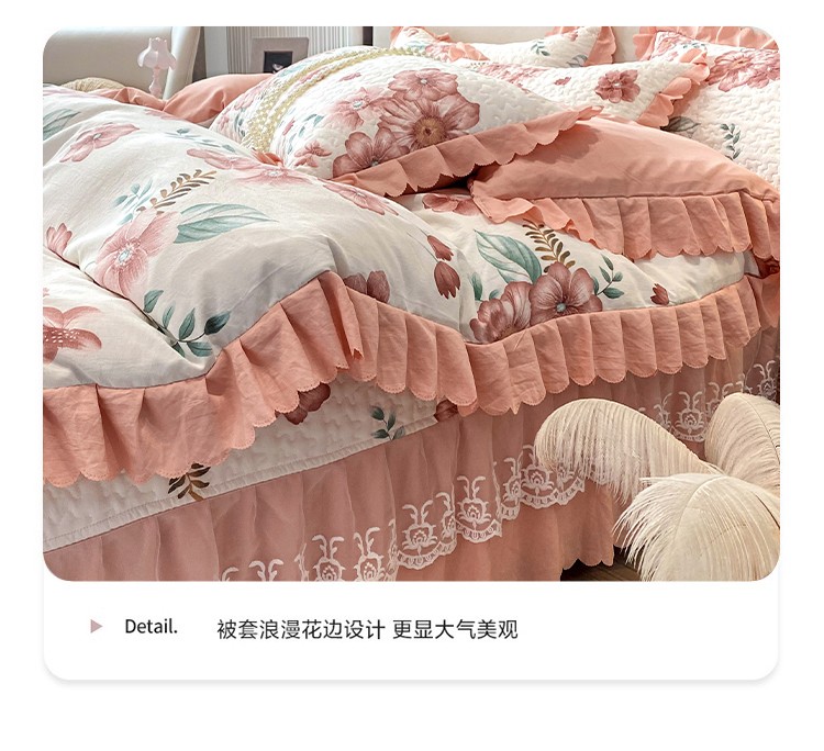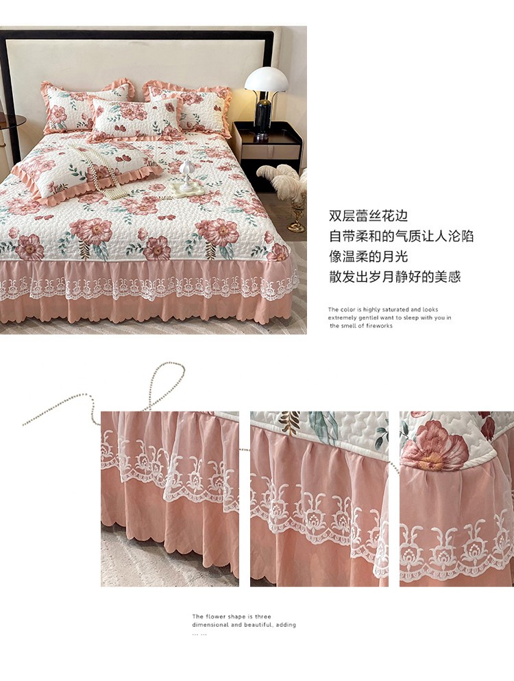 商品名称:漫布云2023新款秋冬夹棉床盖韩版公主风花边床罩加厚绗绣床裙四件套