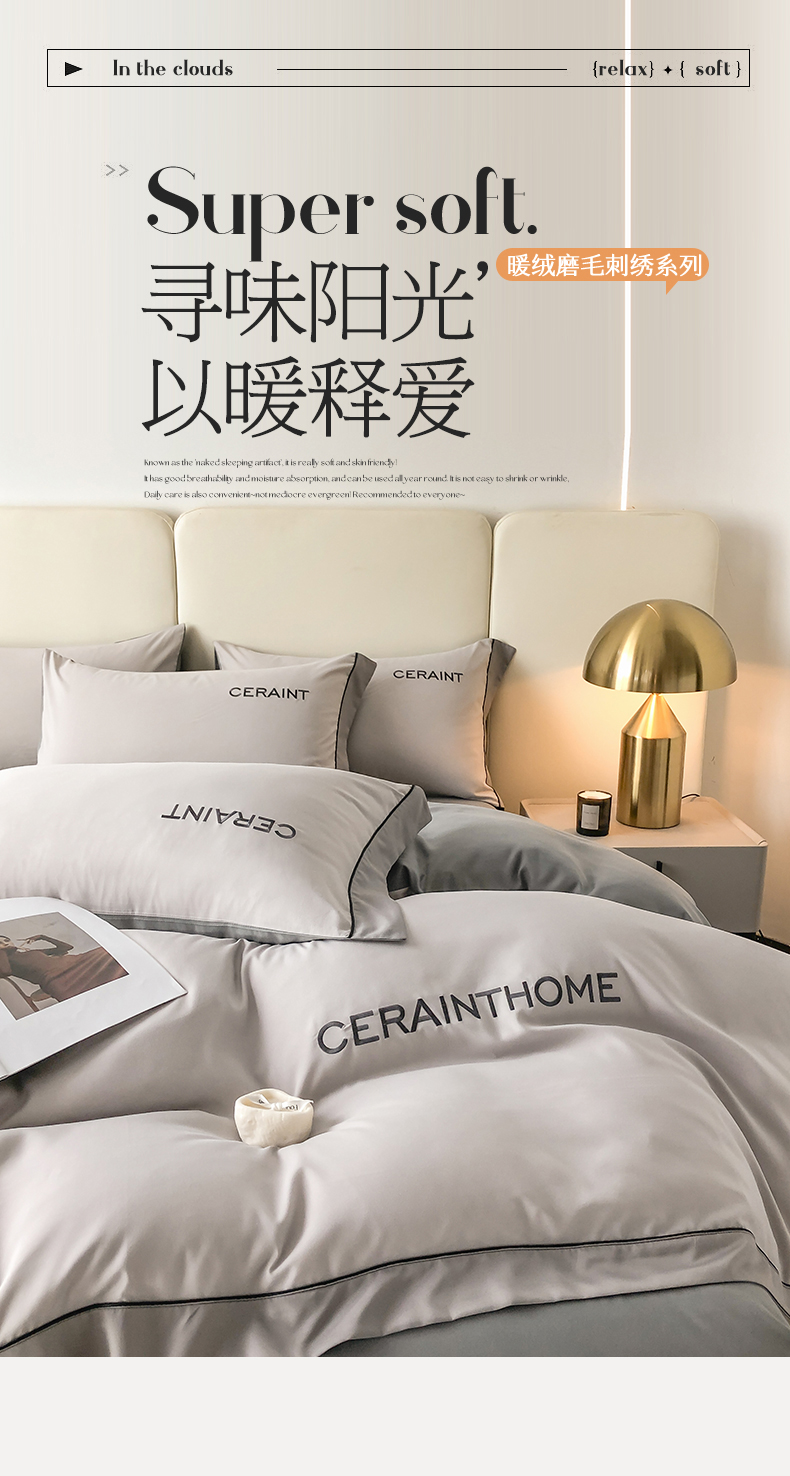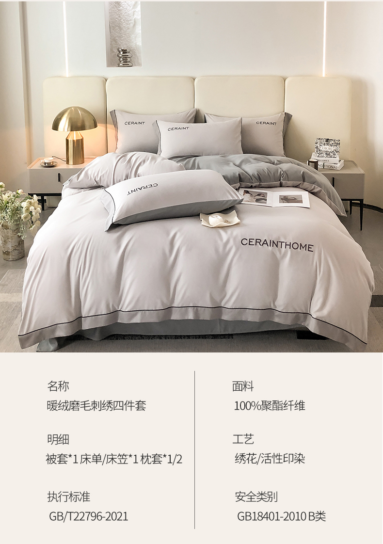 盛秋家纺 2025新款洛伦-麻绳款系列四件套 山灰+中灰
