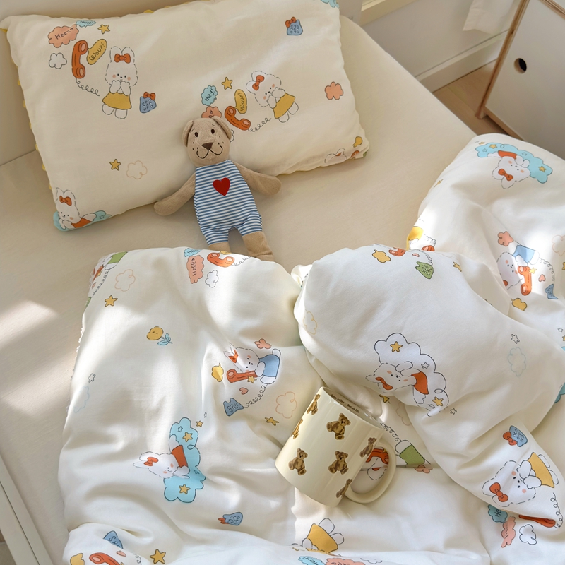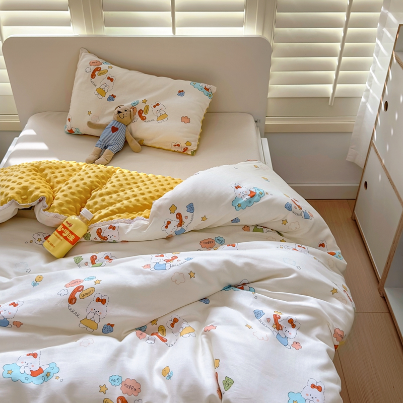 商品名称:希诺家居 2023新款豆豆被全棉A类双层纱婴幼儿豆豆被可拆洗学生宿舍被子 叮咚小兔