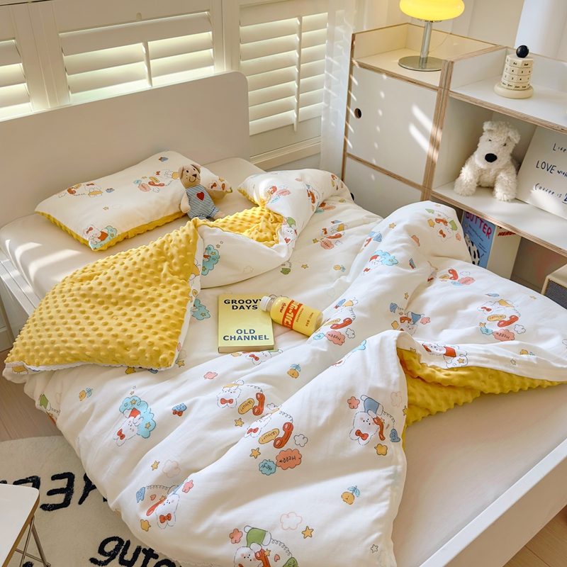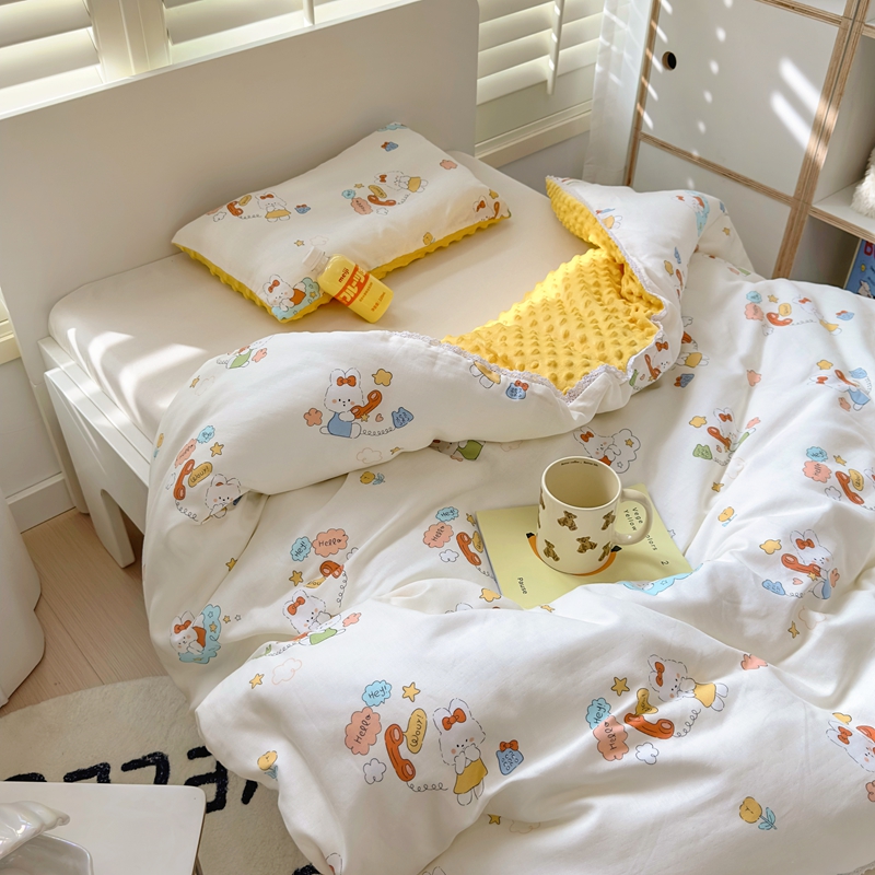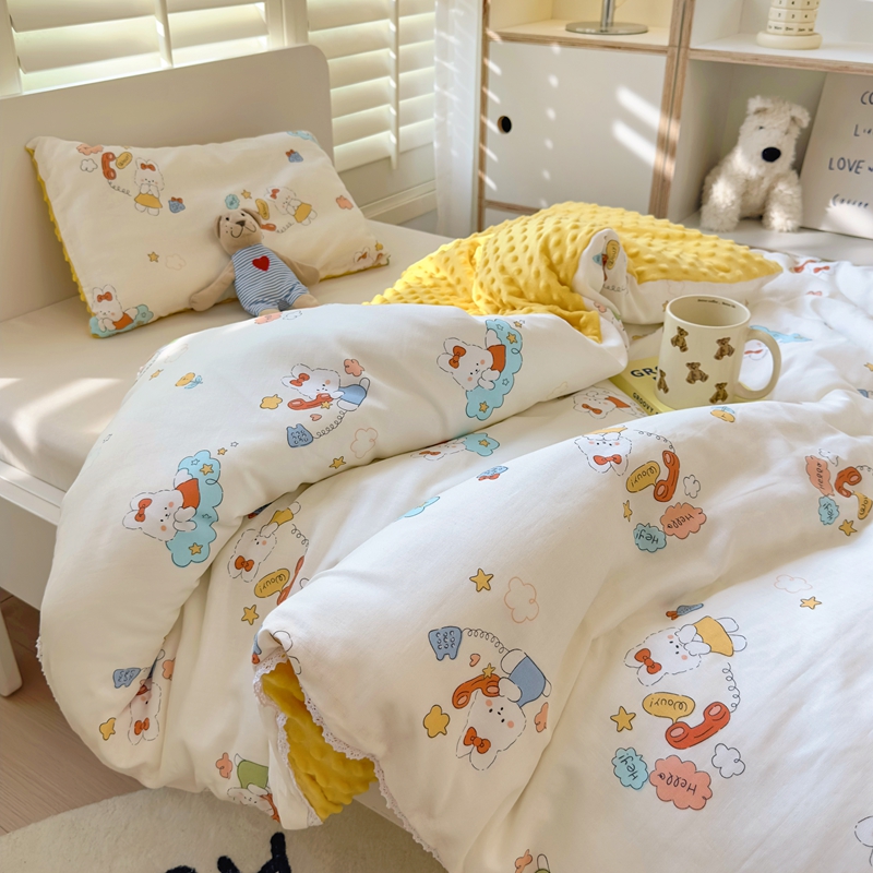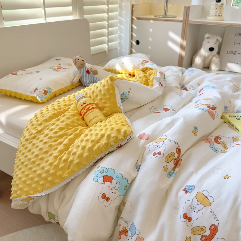 希诺家居 2023新款豆豆被全棉A类双层纱婴幼儿豆豆被可拆洗学生宿舍被子 叮咚小兔
