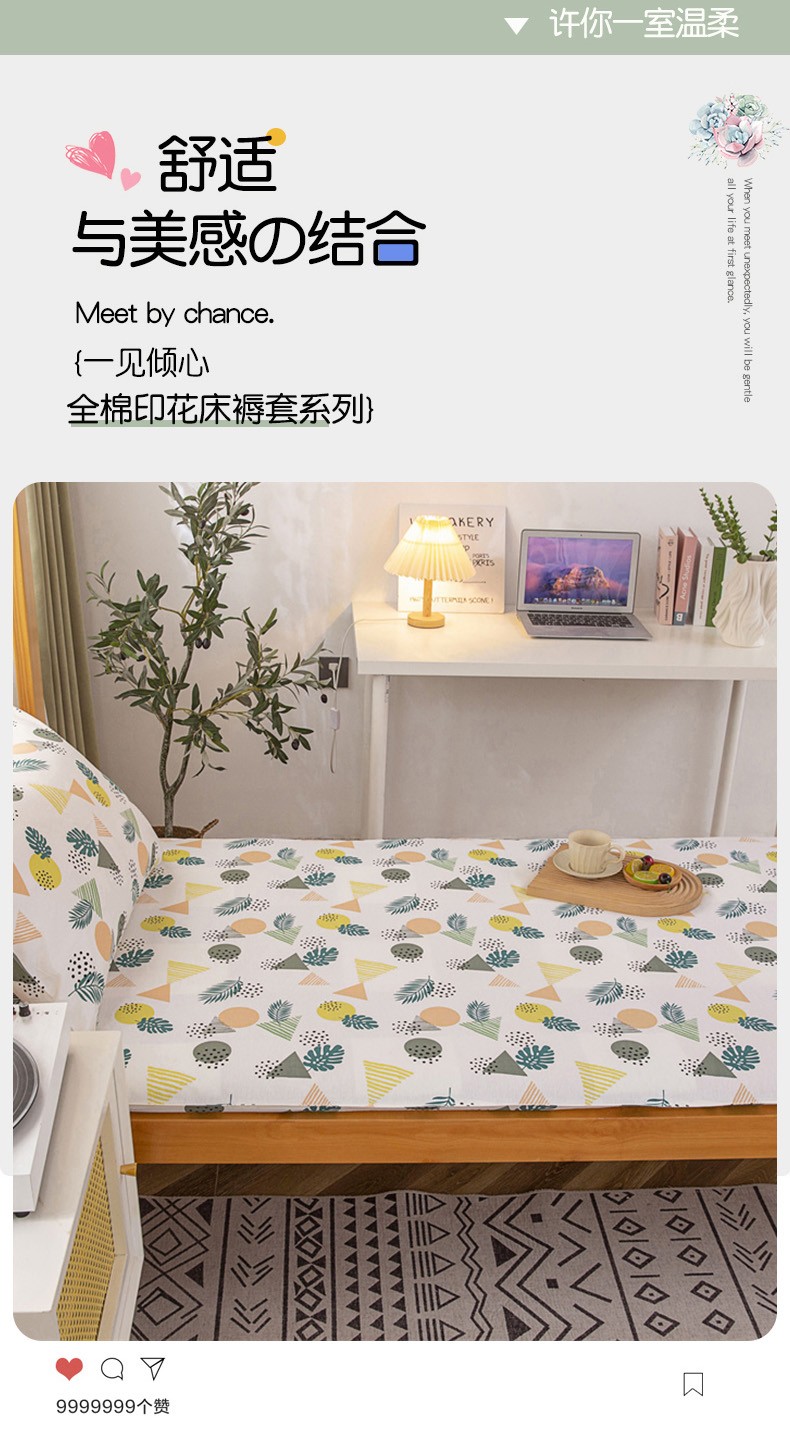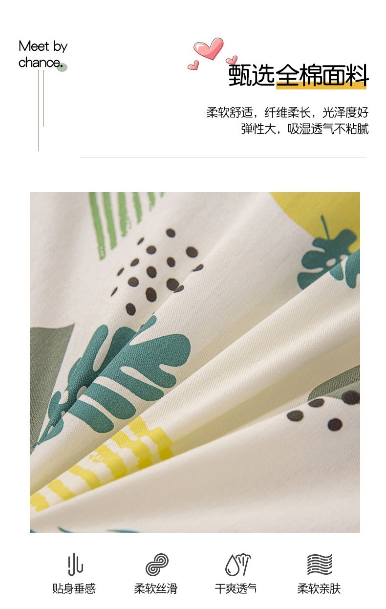 • 91家纺网 家纺一手货源 找家纺 棉乐町 2025新款全棉床褥套三件套 叶叶风情