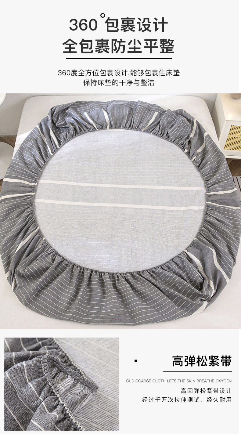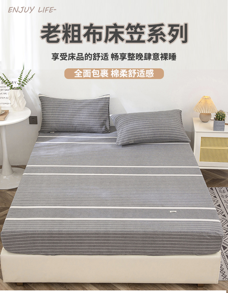 • 91家纺网 家纺一手货源 找家纺 棉乐町 2025新款老粗布床笠 冷灰