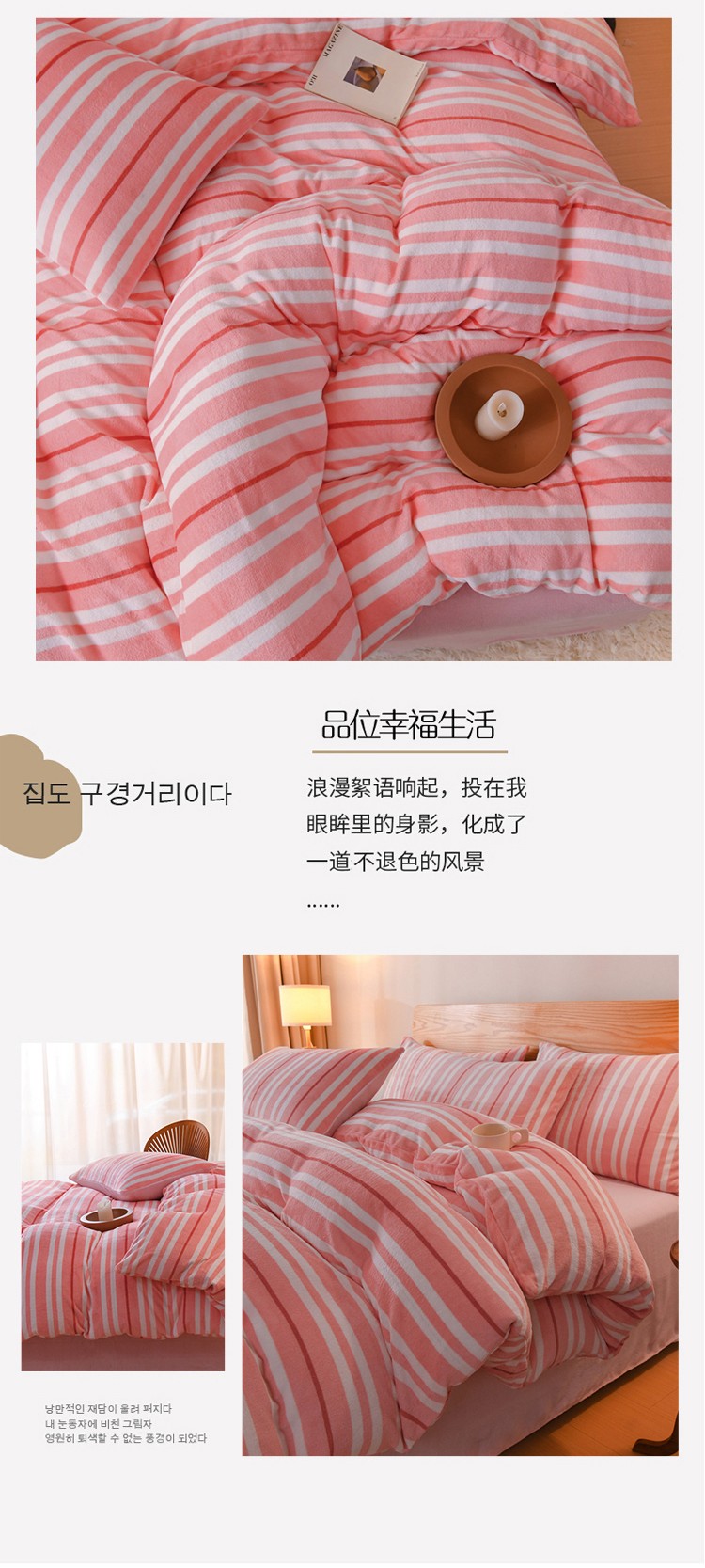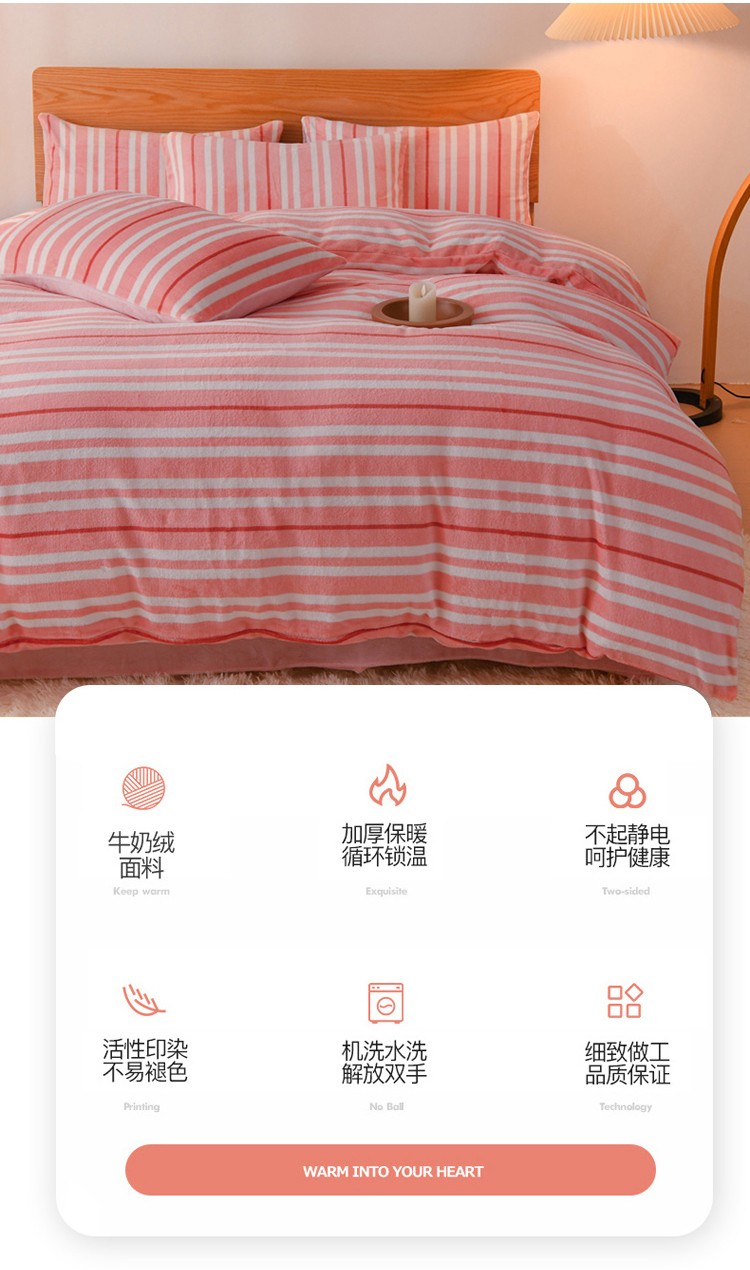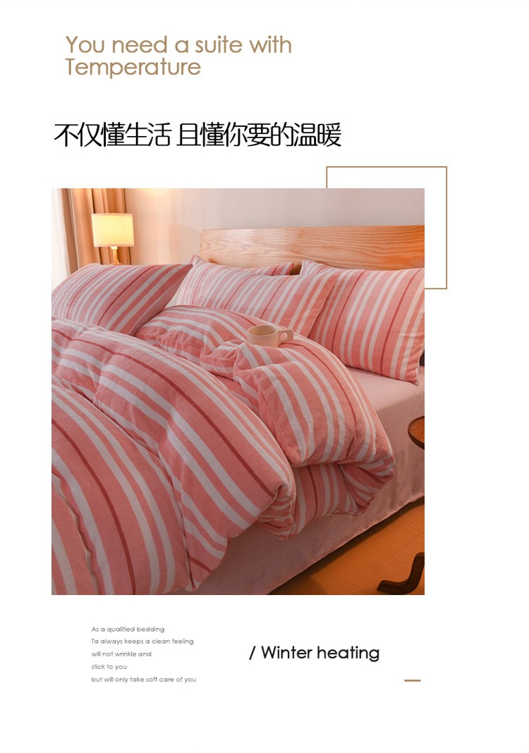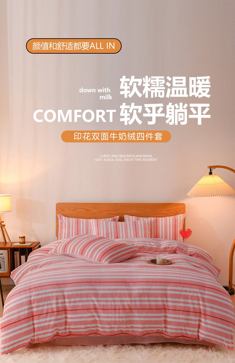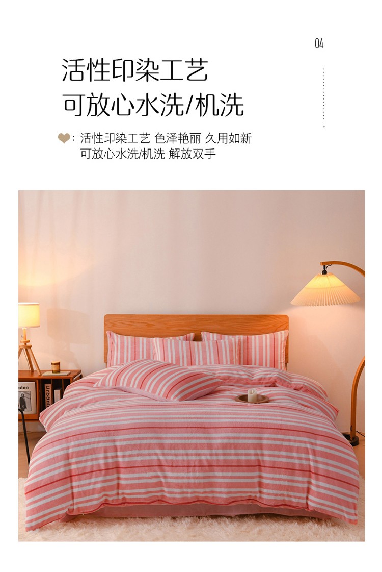 当前位置: 91家纺网 > 商品网购 > 床品套件 > 四件套 > 牛奶绒四件套 > 2023新款无印风印花双面牛奶绒四件套 粉条纹