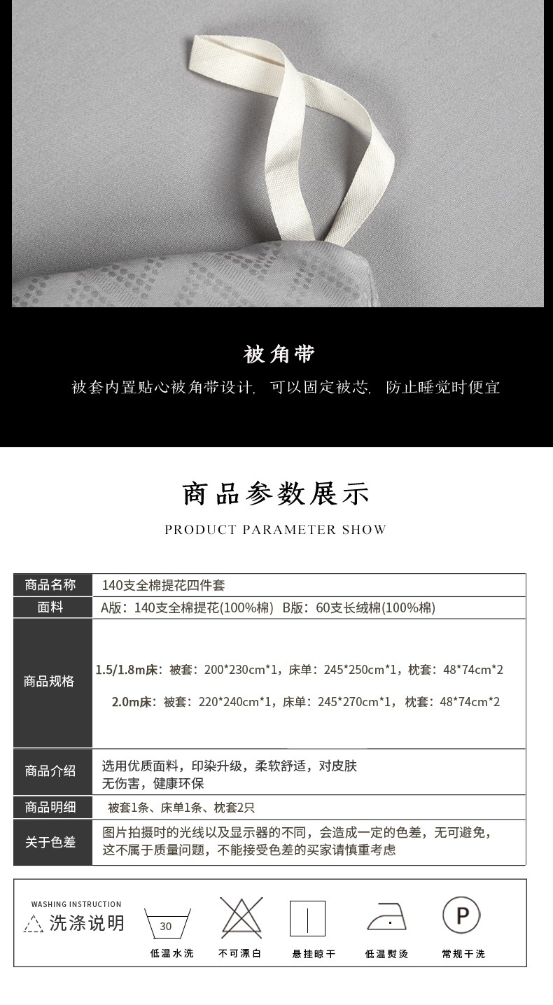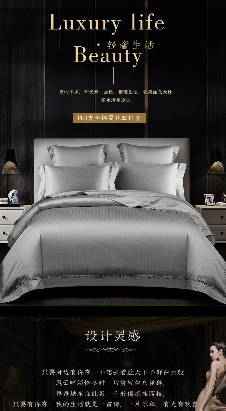 140S140支长绒棉全棉提花四件套可定制可配七件套直播爆款 米波