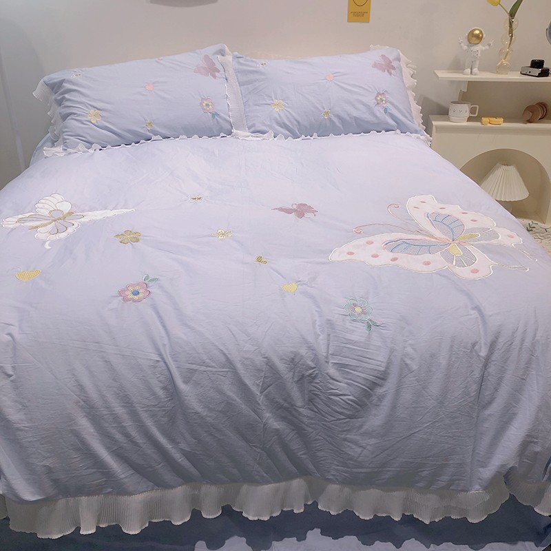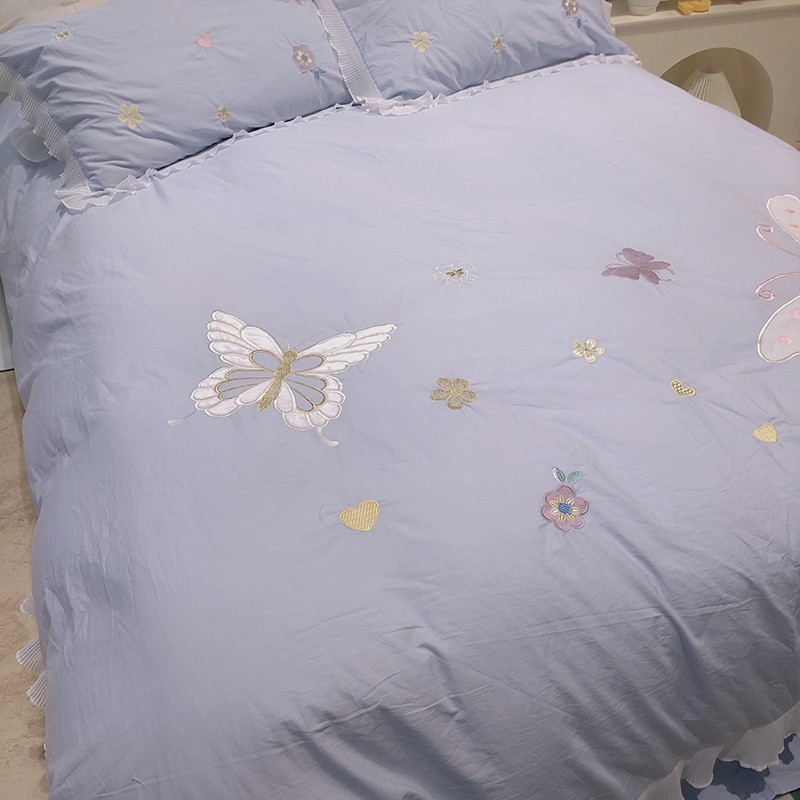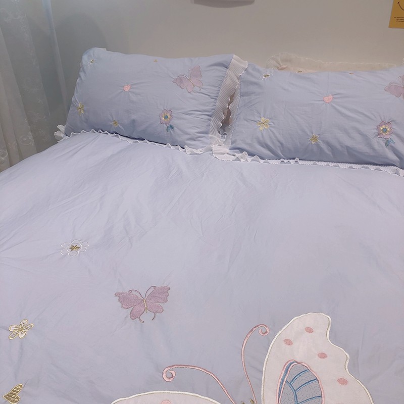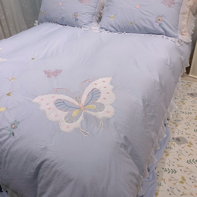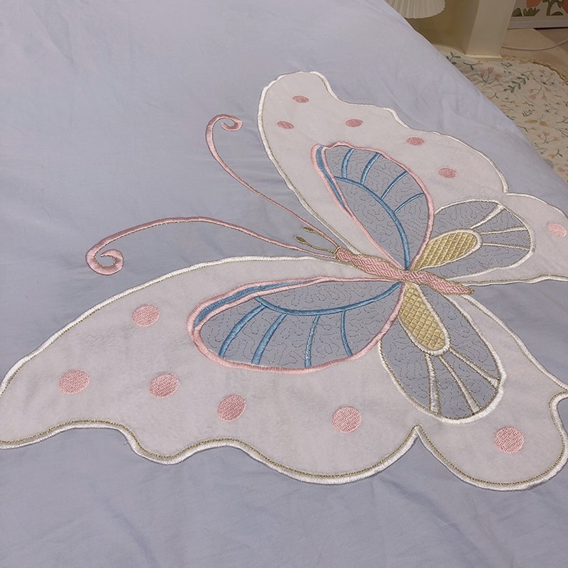 商品名称:2023新款A类母婴级全棉水洗棉绣花四件套--蝴蝶夫人系列实拍图 蝴蝶夫人-兰