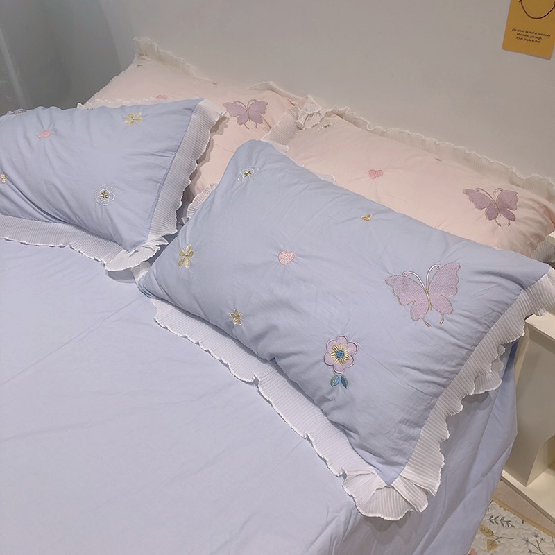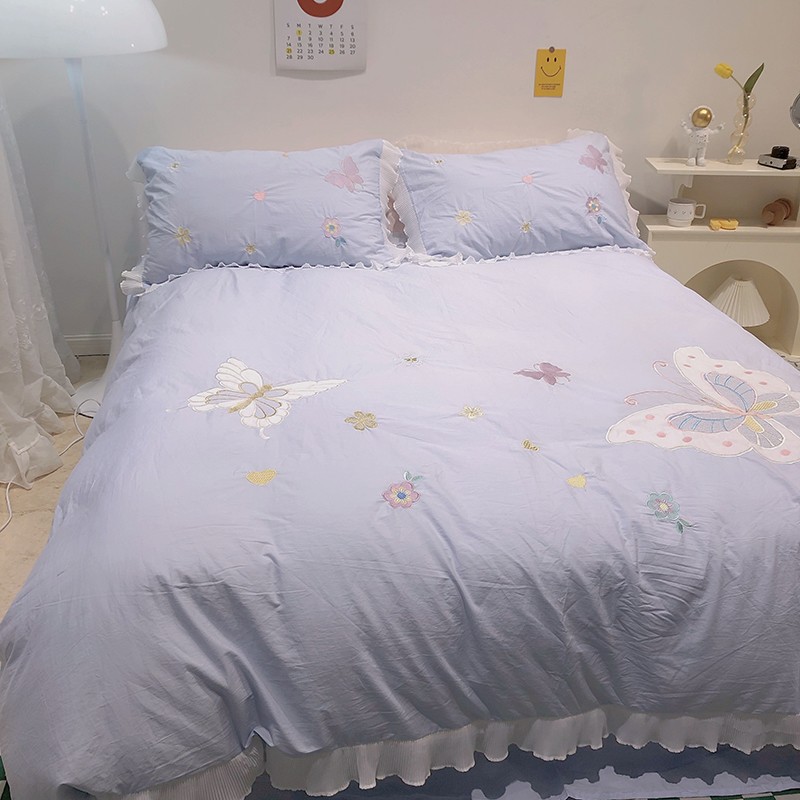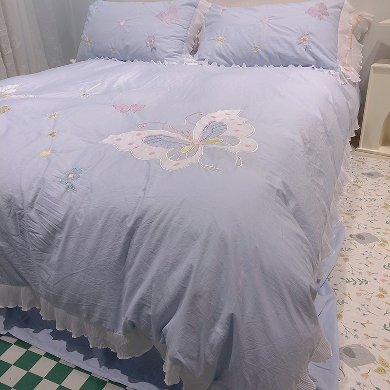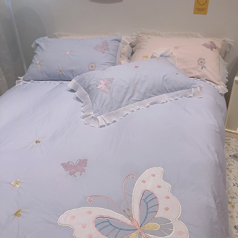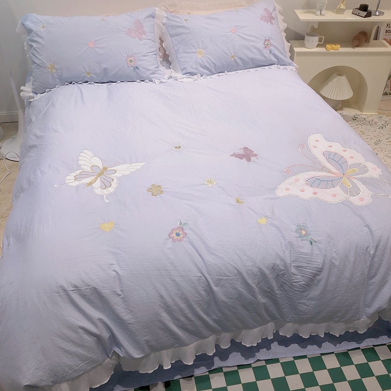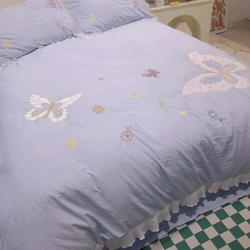 商品名称:2023新款A类母婴级全棉水洗棉绣花四件套--蝴蝶夫人系列实拍图 蝴蝶夫人-兰