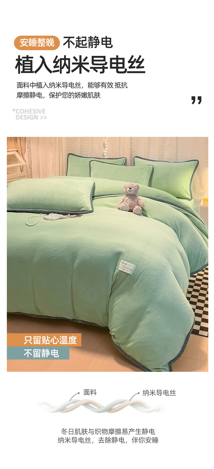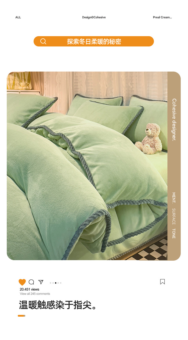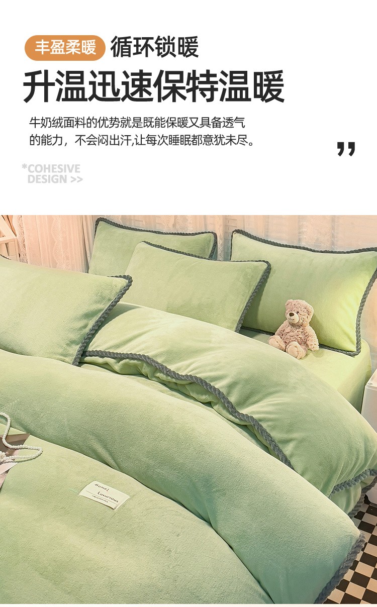 商品名称:2023新款加厚牛奶绒纯色优雅四件套 优雅-牛油果
