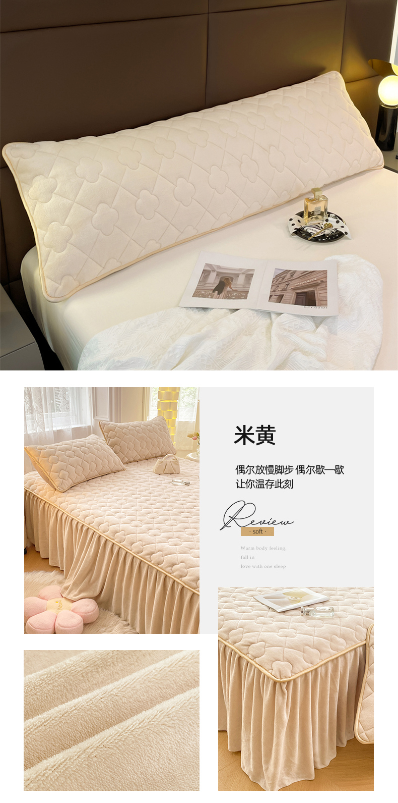 商品名称:梦舒羽 2025新款牛奶绒夹棉长枕套宿舍双人枕芯套 米黄