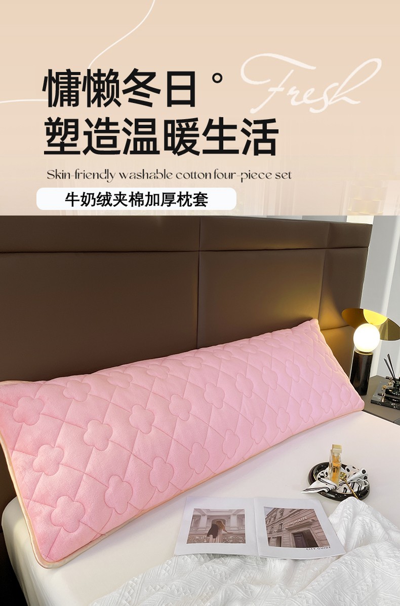 新款牛奶绒夹棉长枕套宿舍双人枕芯套 樱花粉