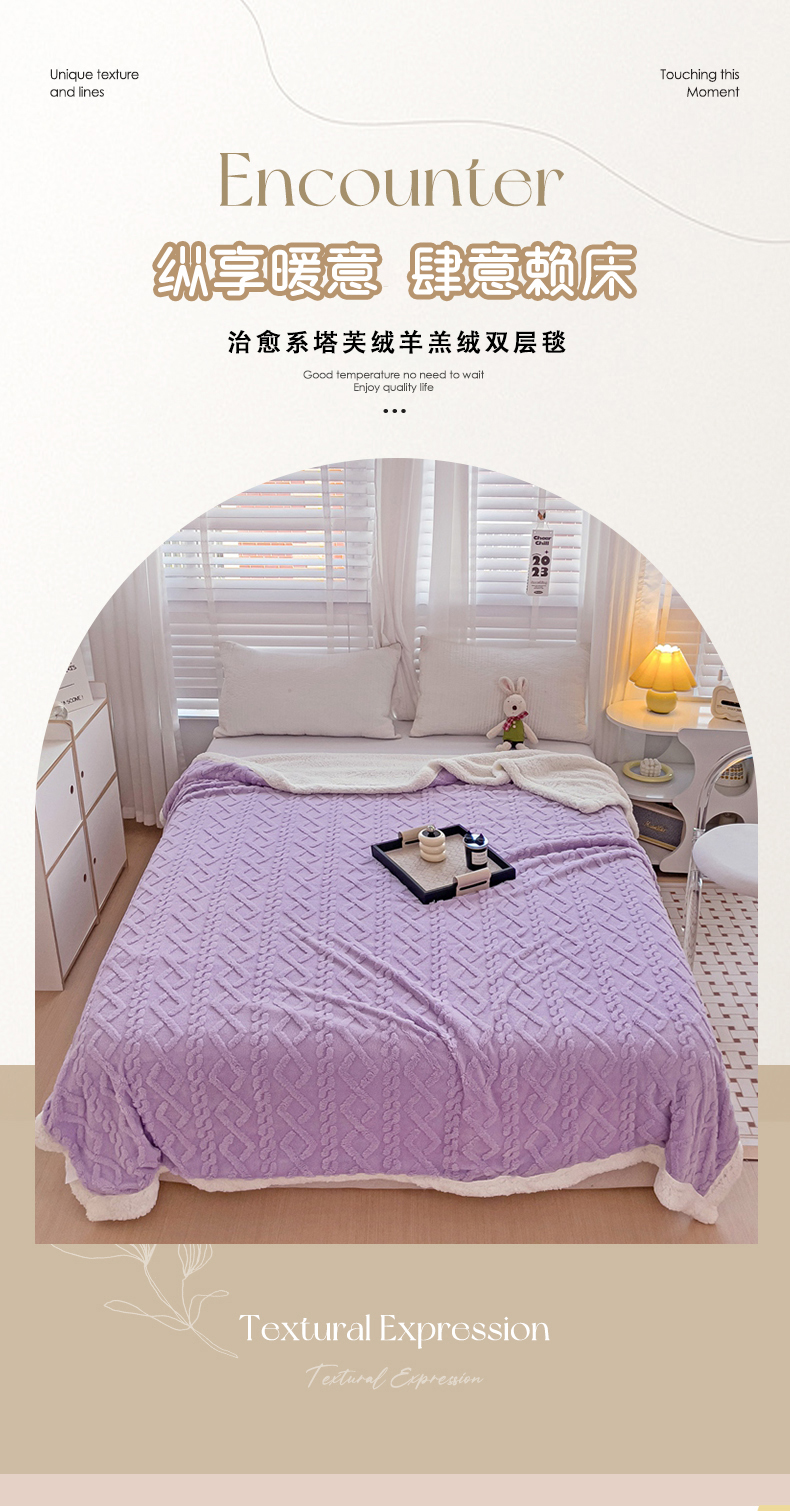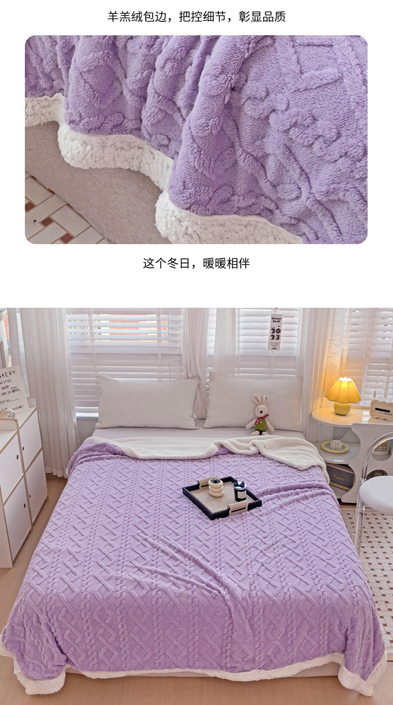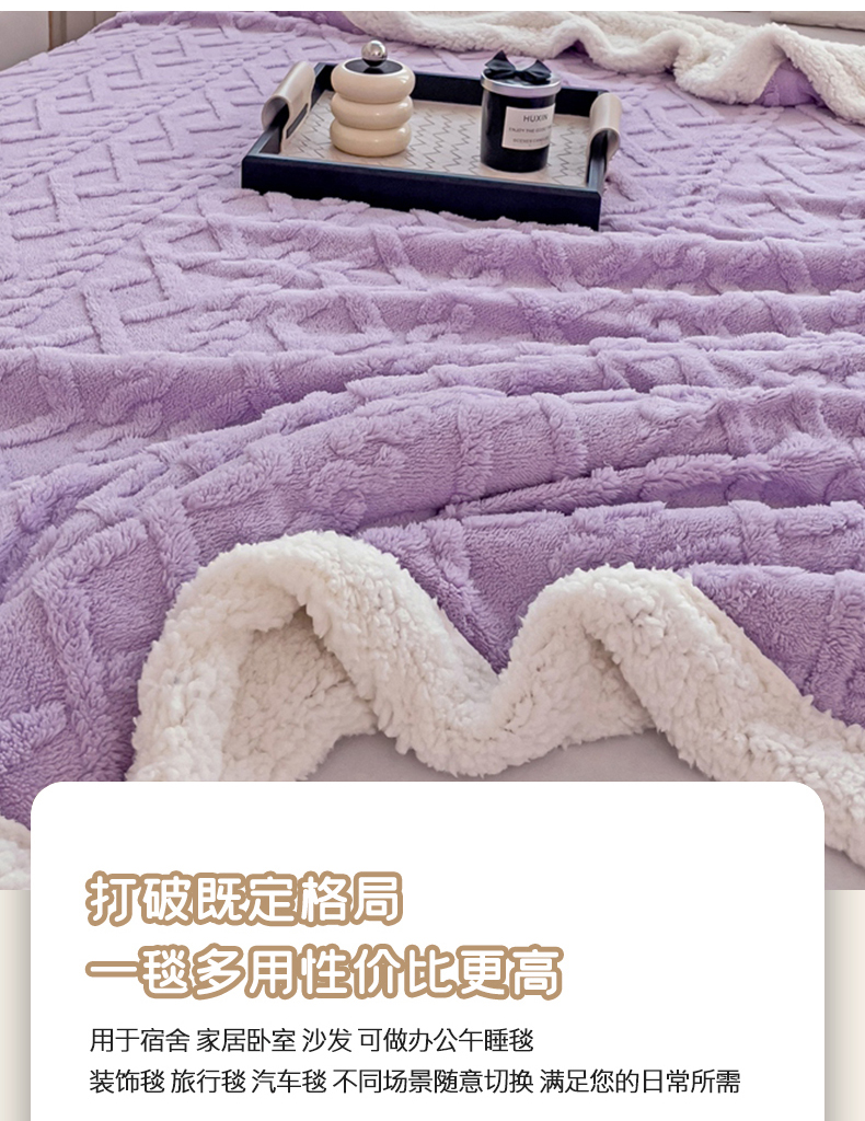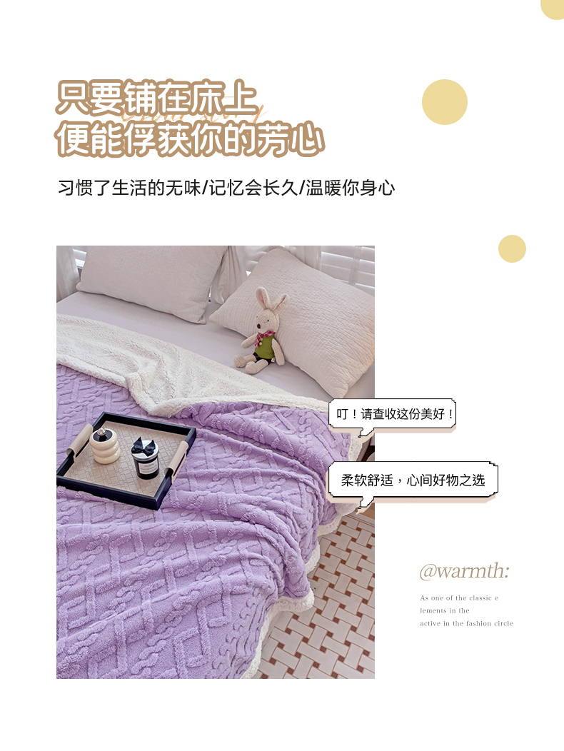 当前位置: 91家纺网 > 商品网购 > 毛毯休闲毯绒毯 > 毛毯 > 艾咪 新款230克加厚塔芙绒双层毯子羊羔绒毛毯 雪紫