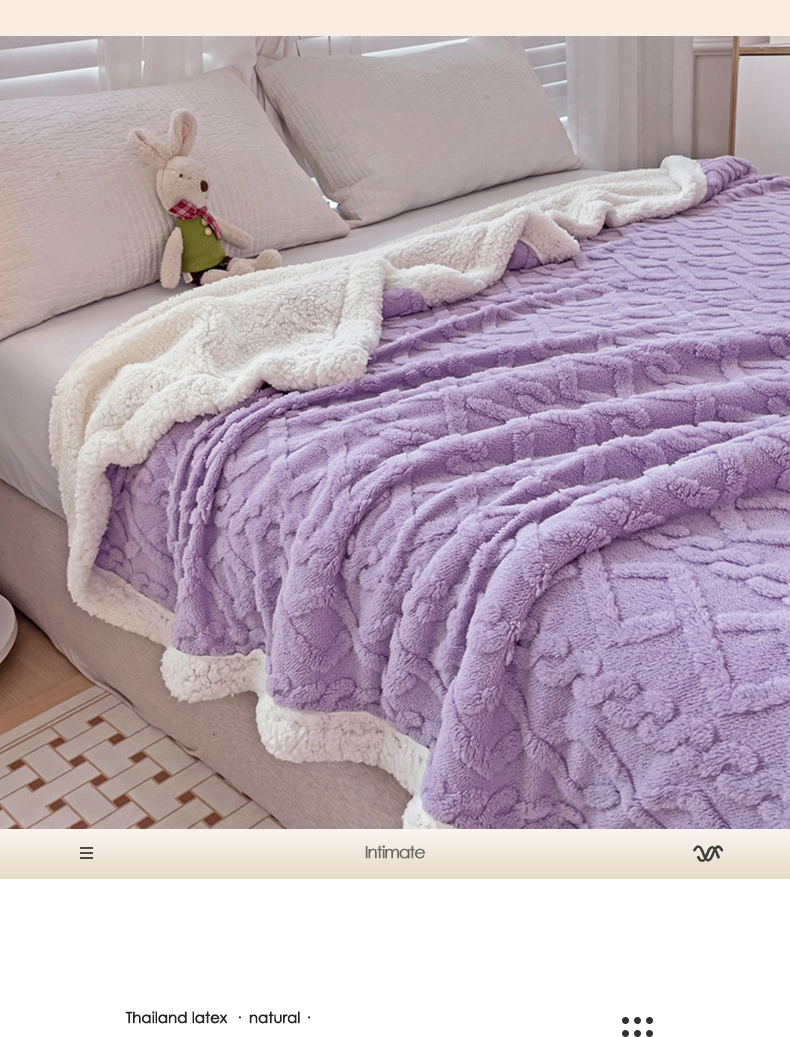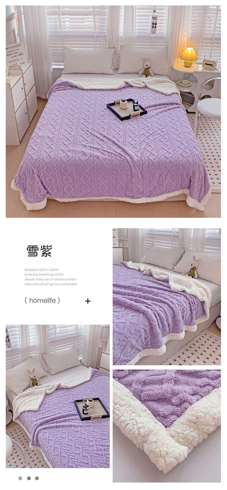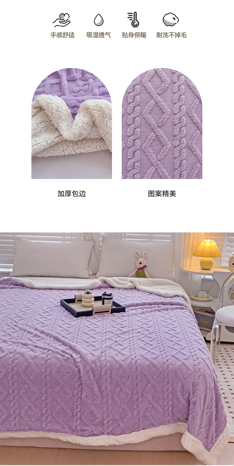 当前位置: 91家纺网 > 商品网购 > 毛毯休闲毯绒毯 > 毛毯 > 艾咪 新款230克加厚塔芙绒双层毯子羊羔绒毛毯 雪紫