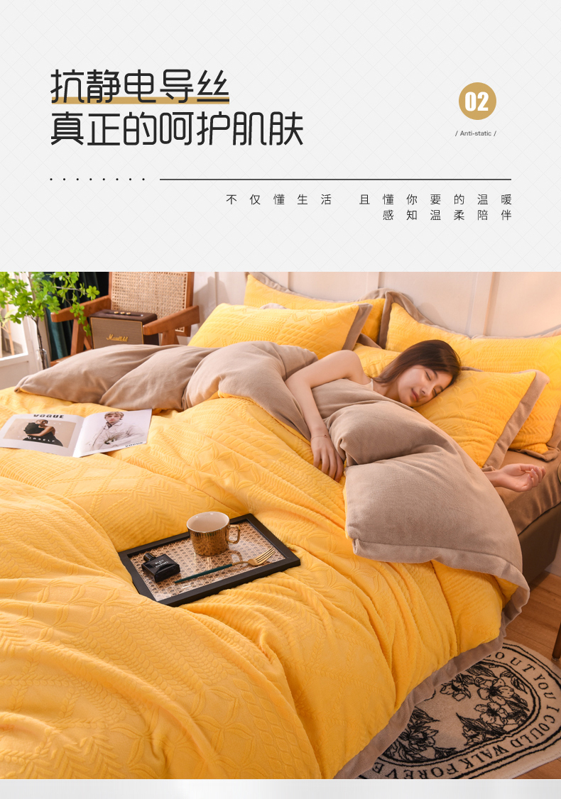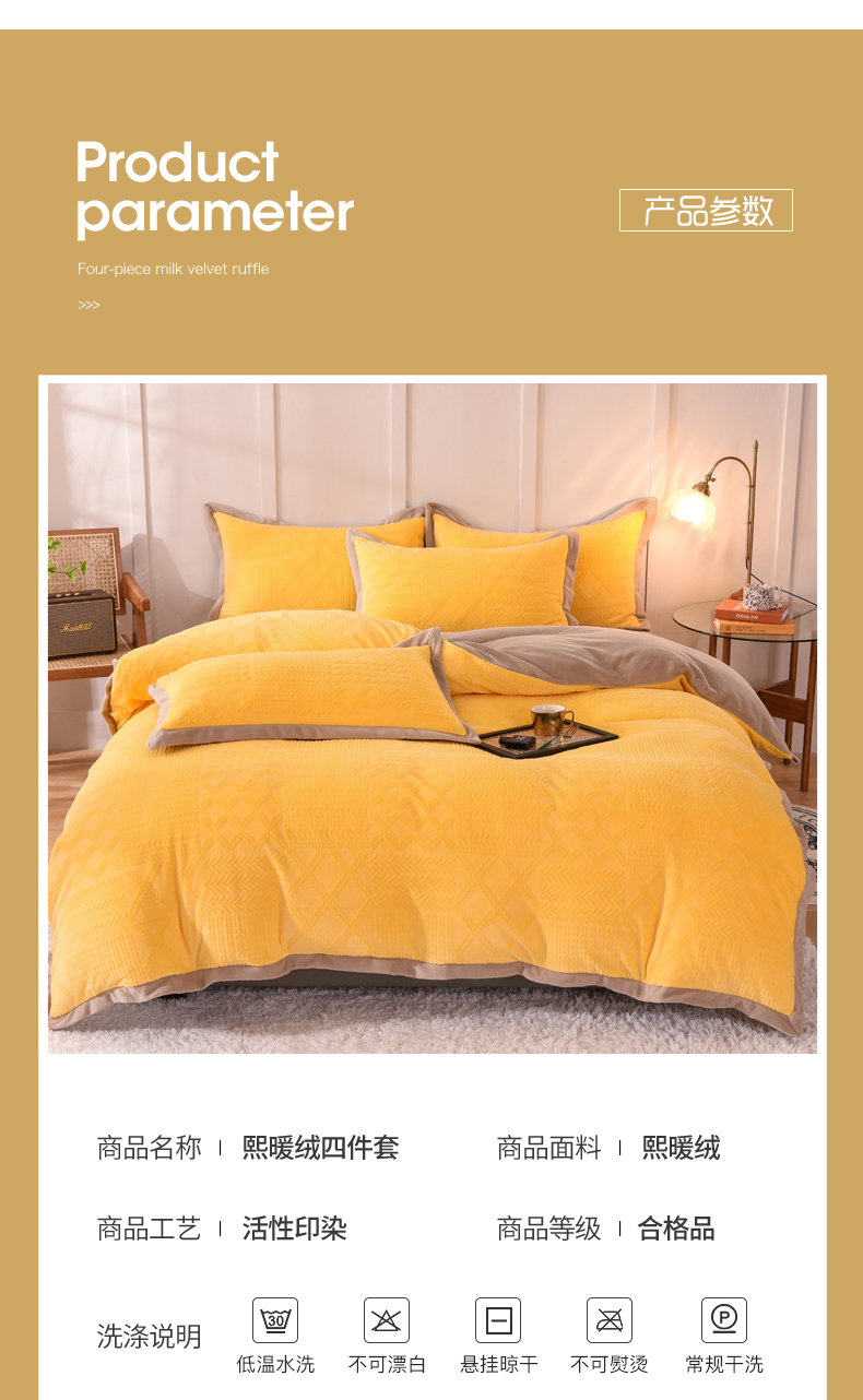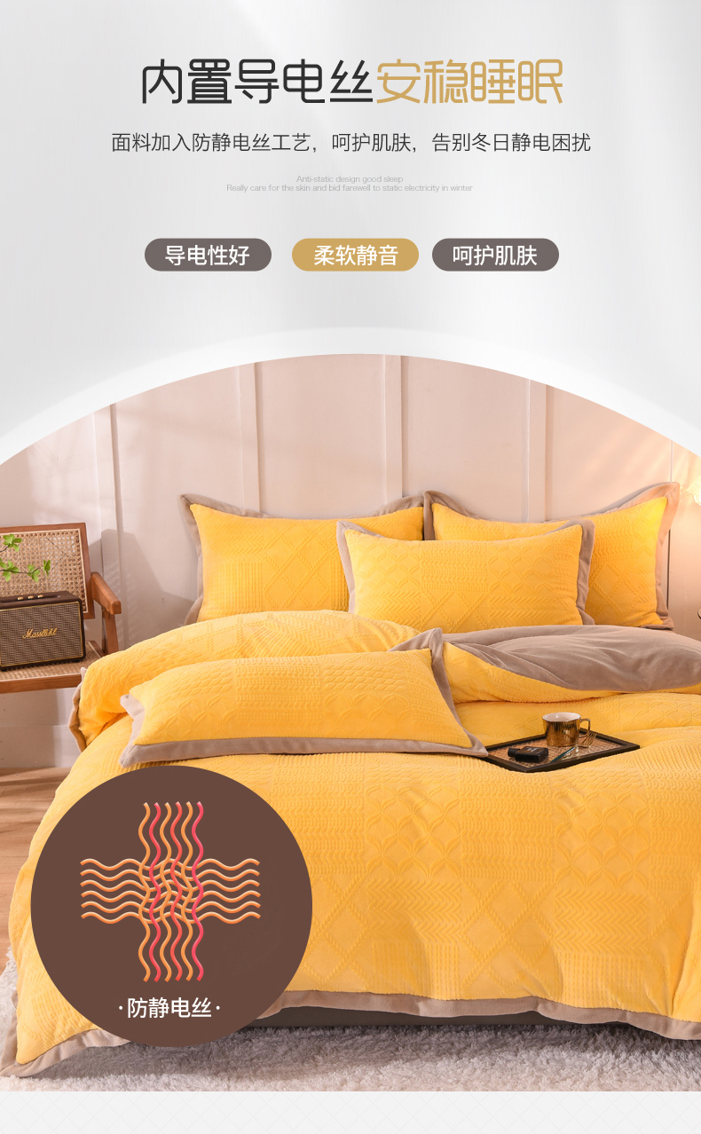 商品名称:丝印良品 2023唯爱雕花A版260克牛奶绒四件套-相机款 唯爱-亮黄