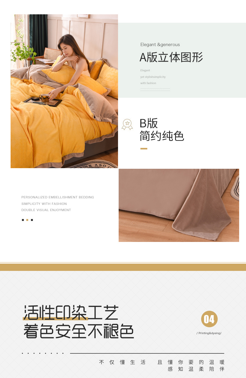 丝印良品 2023唯爱雕花A版260克牛奶绒四件套-相机款 唯爱-亮黄