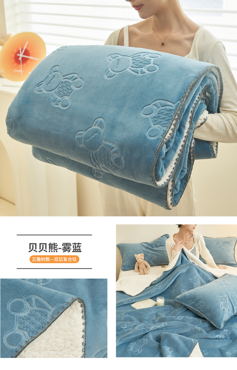 当前位置: 91家纺网 > 商品网购 > 毛毯休闲毯绒毯 > 毛毯 > 21度C 2023新款贝贝熊-布叮熊牛奶绒复合毯 贝贝熊-雾蓝