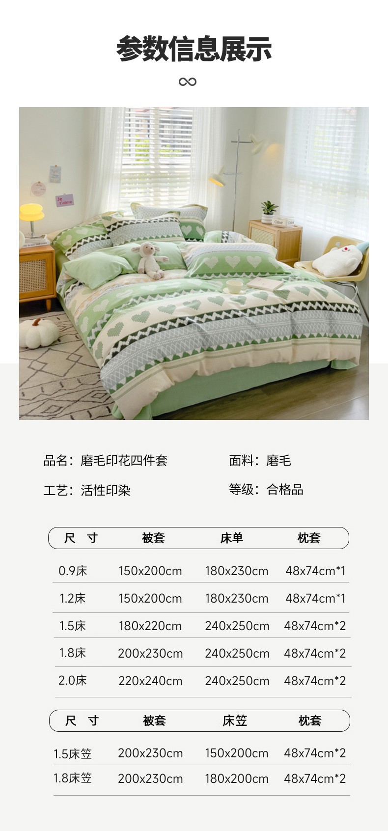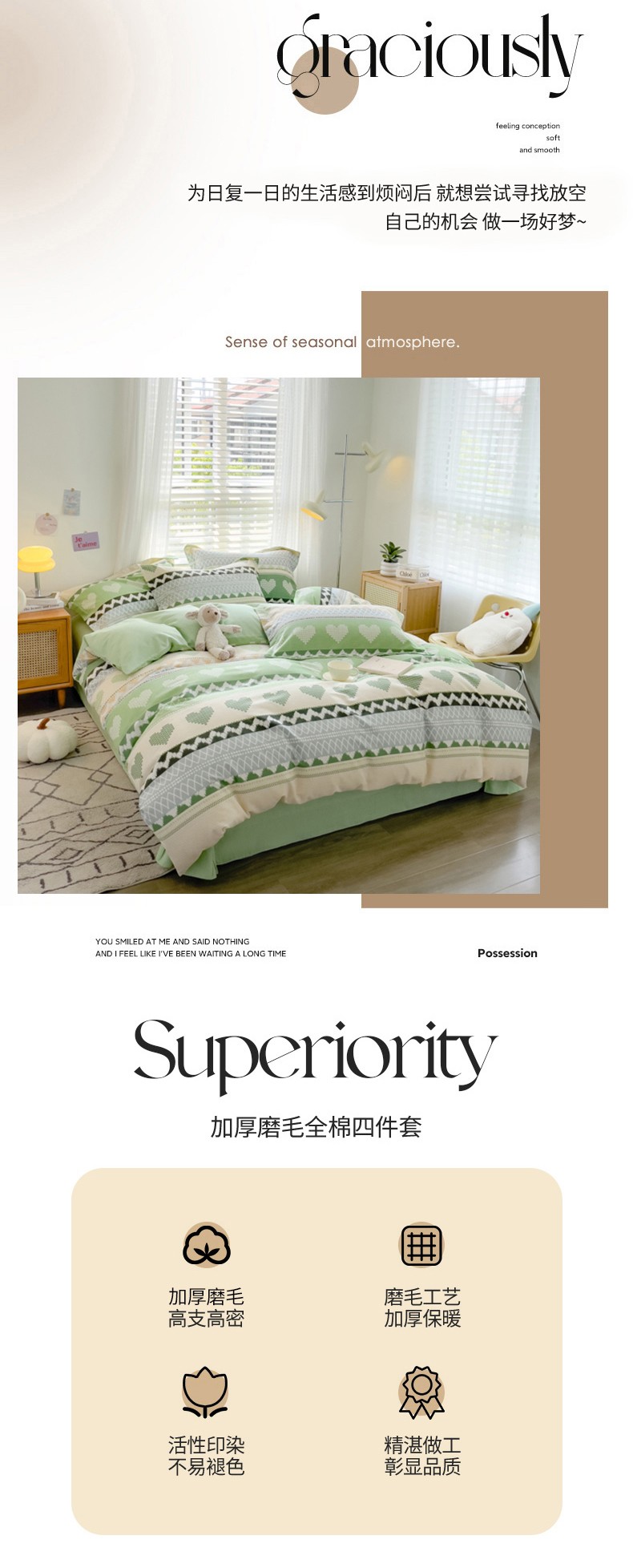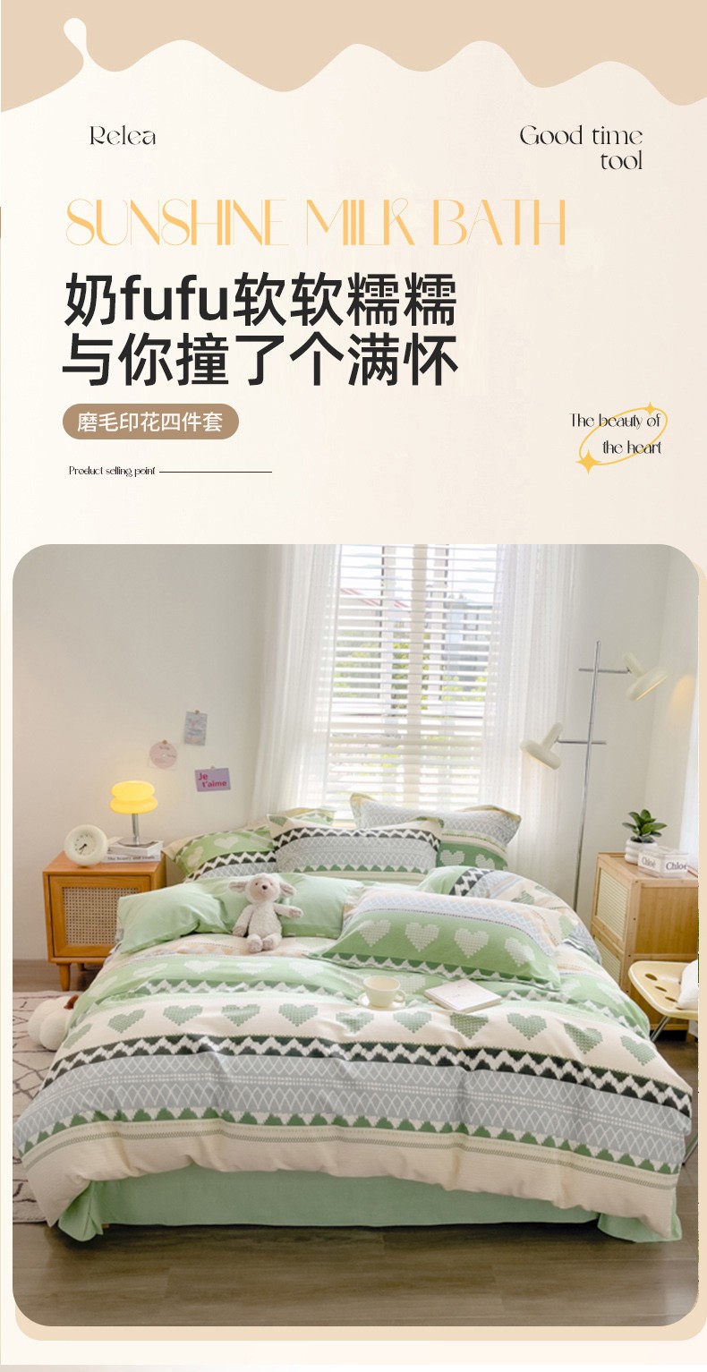 商品名称:佰亿莱 2024直播新款小清新印花全棉加厚磨毛四件套 爱心格