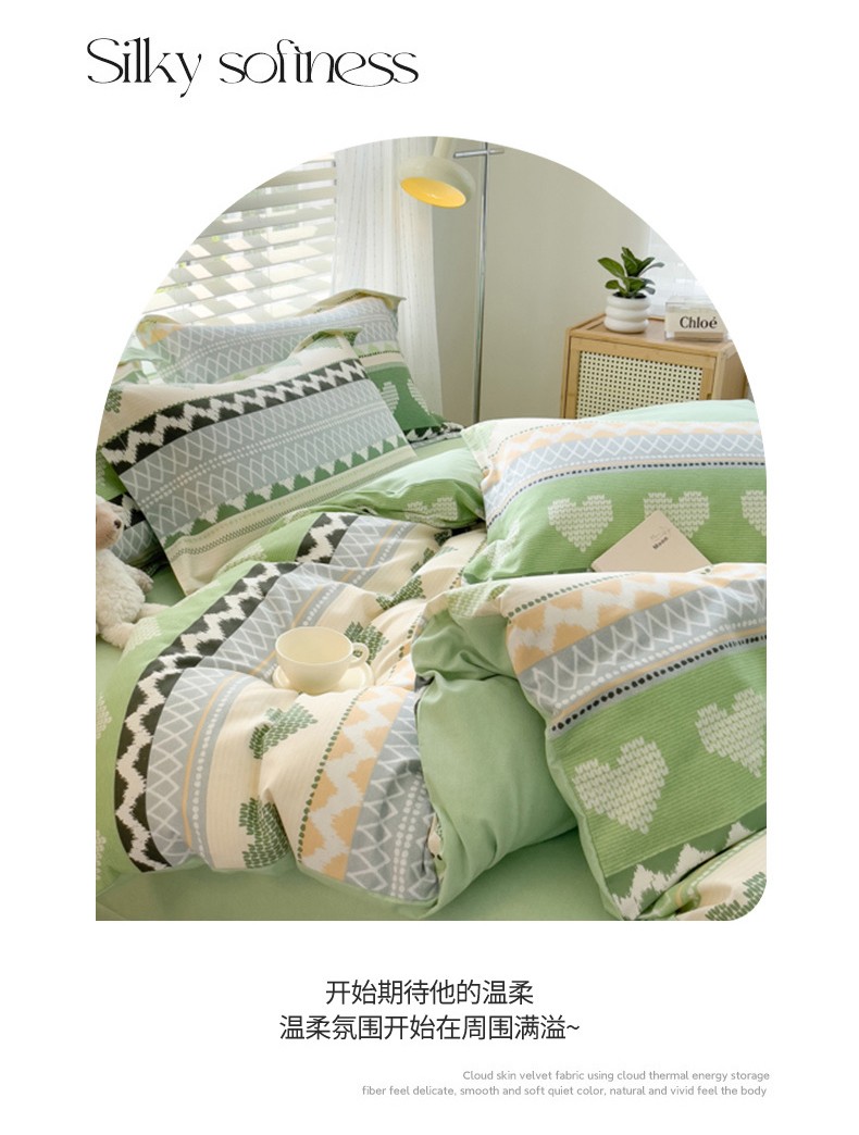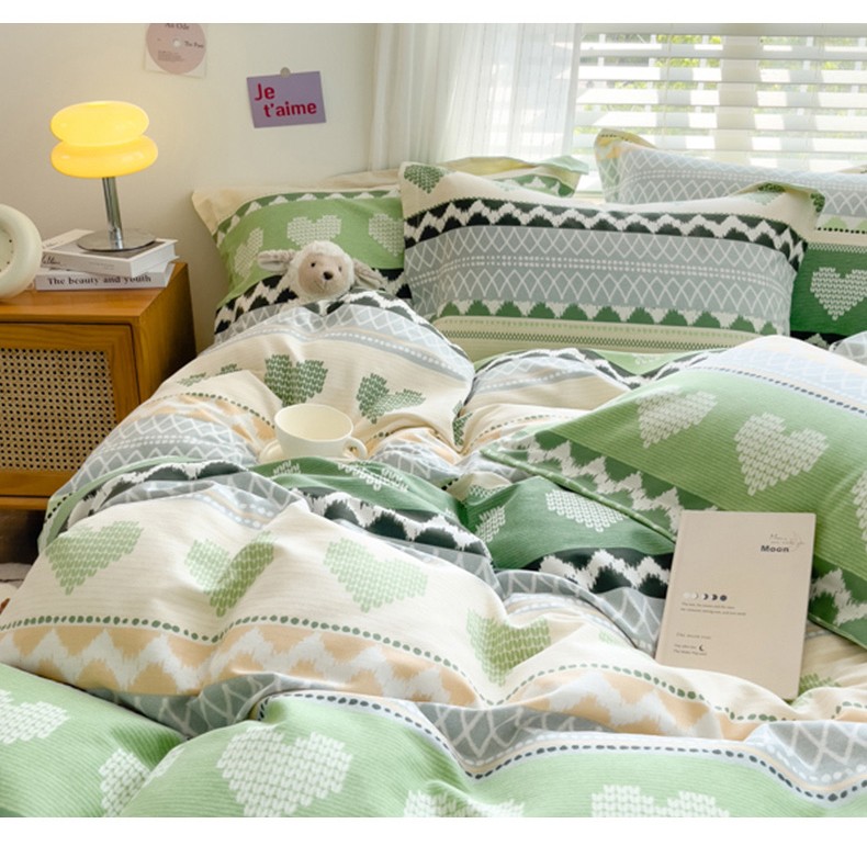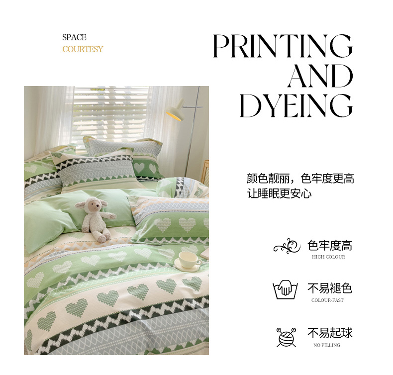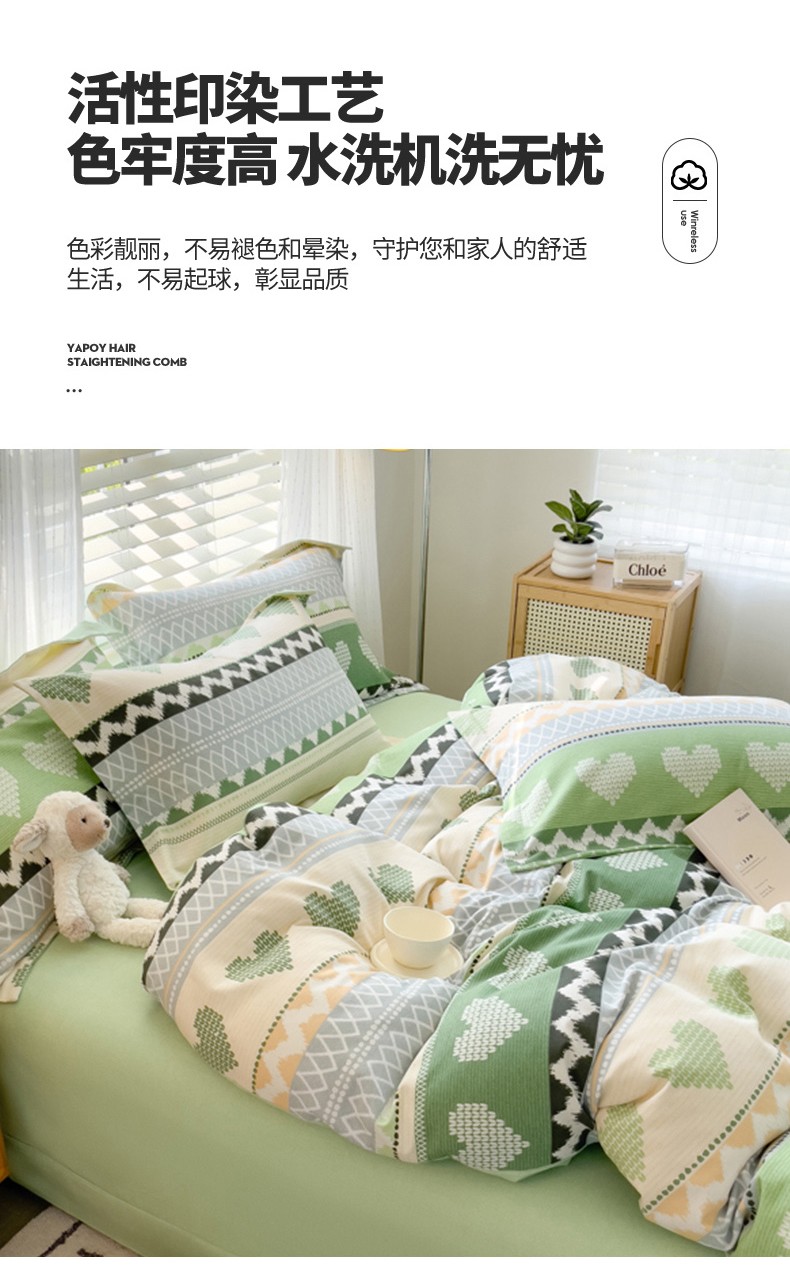 佰亿莱 2024直播新款小清新印花全棉加厚磨毛四件套 爱心格
