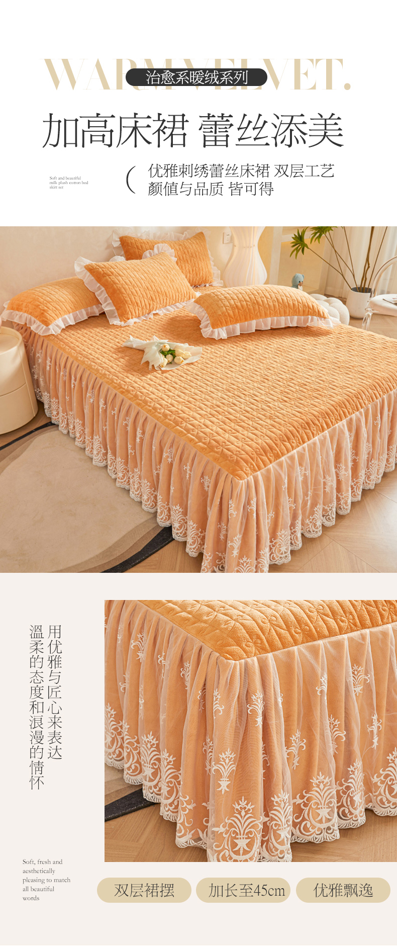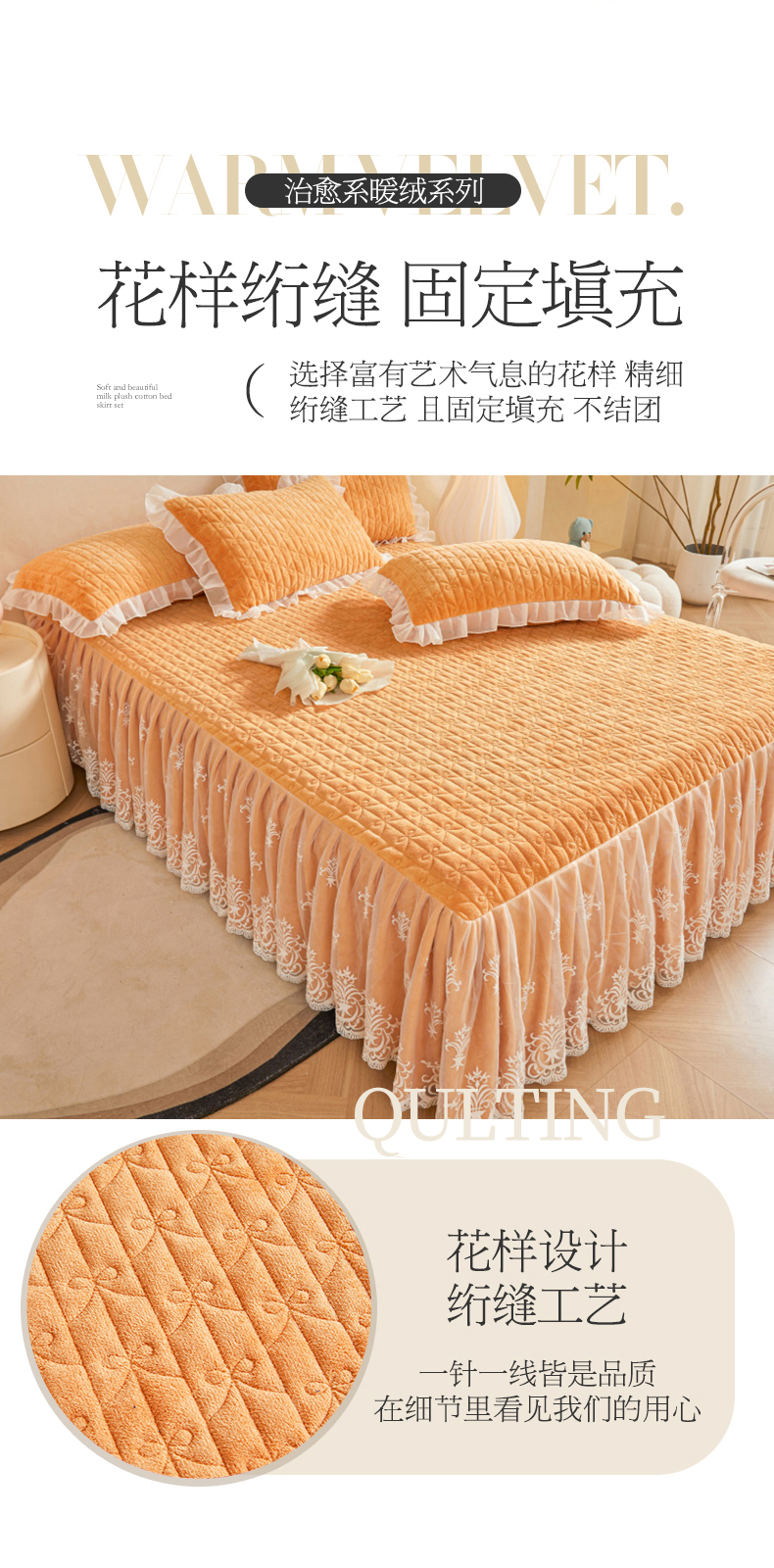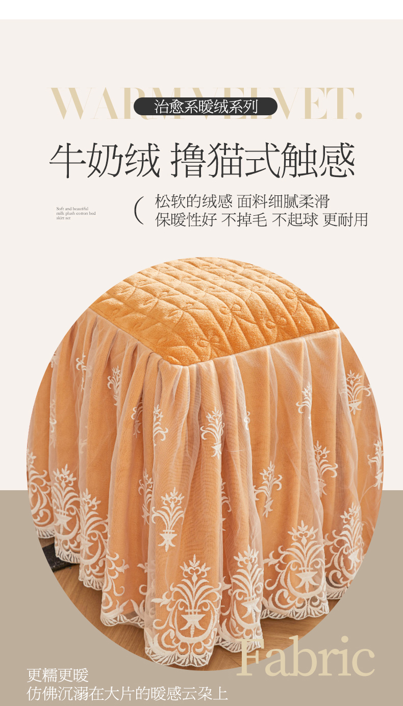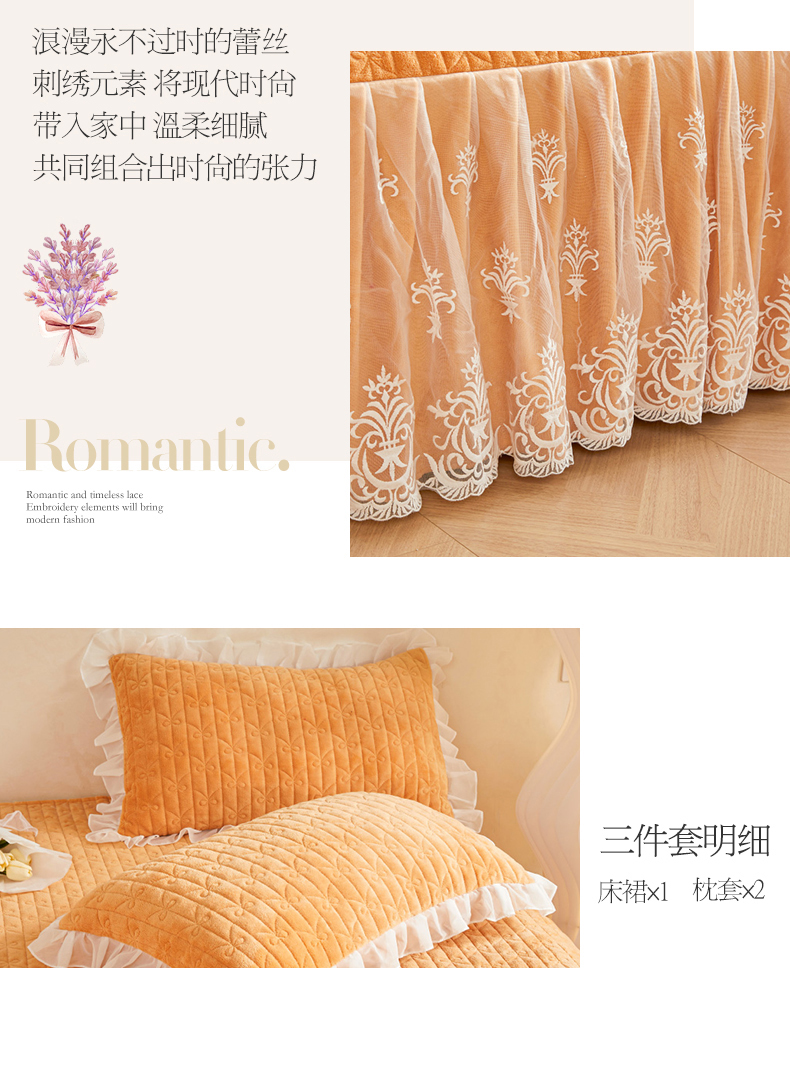 (总)虹星家纺 2025新款雕花牛奶绒床裙三件套-花溪系列,花溪-米黄,花溪-奶油黄