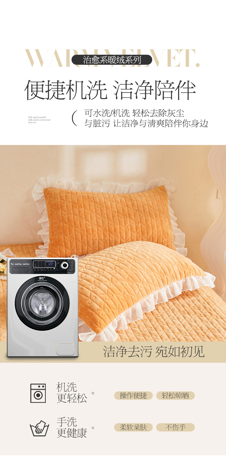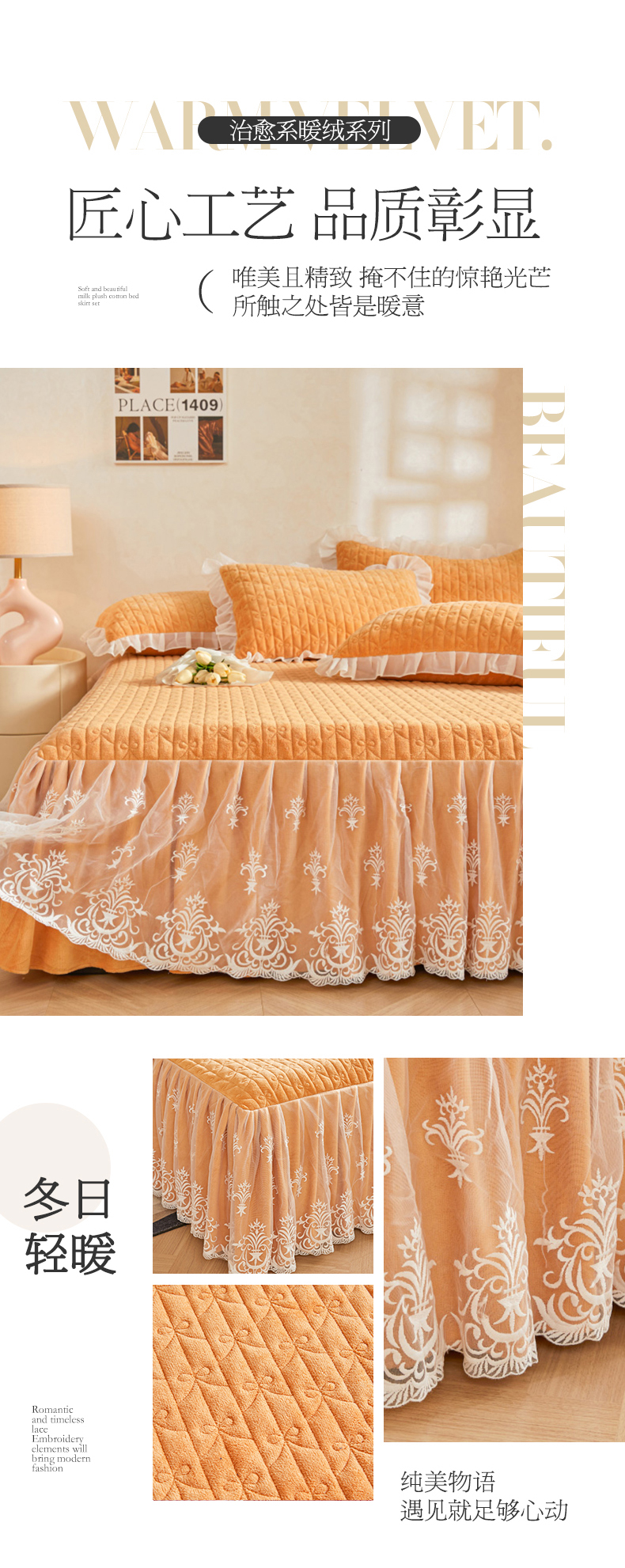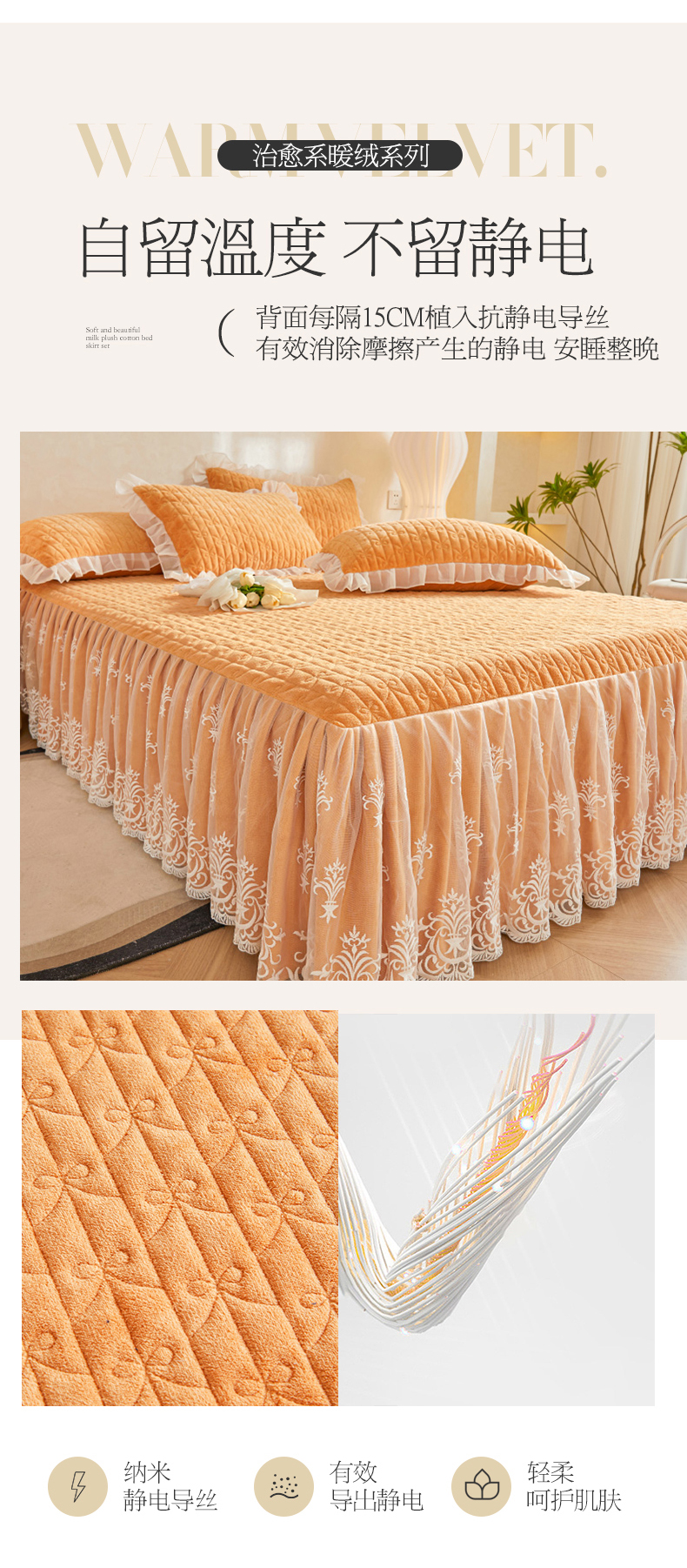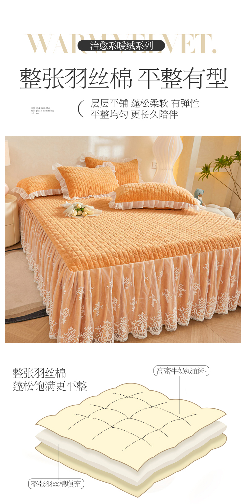 (总)虹星家纺 2025新款雕花牛奶绒床裙三件套-花溪系列,花溪-米黄,花溪-奶油黄