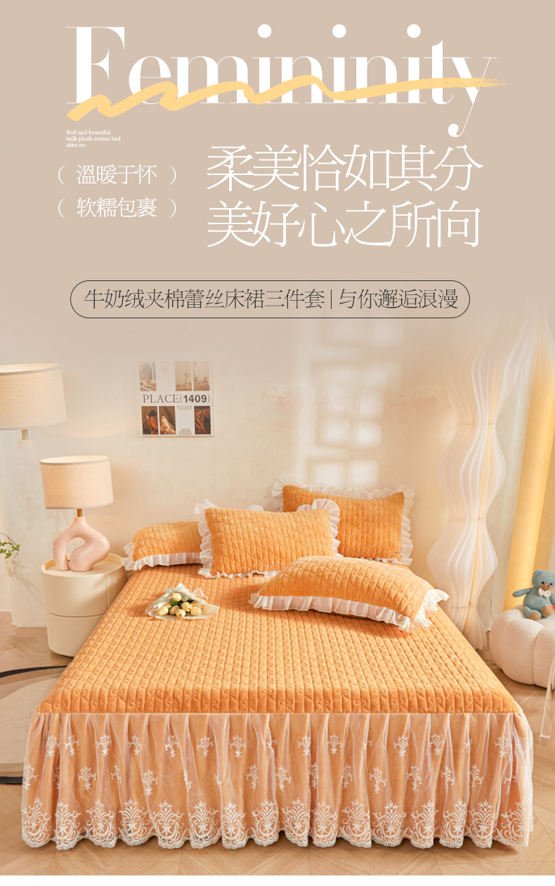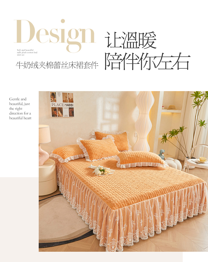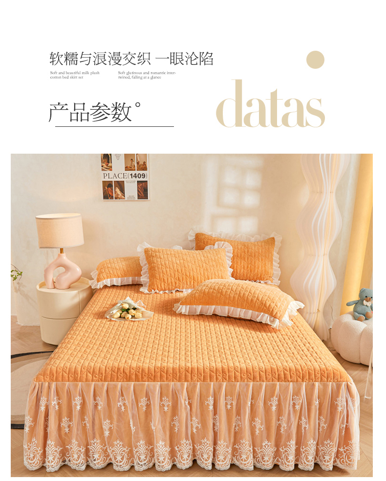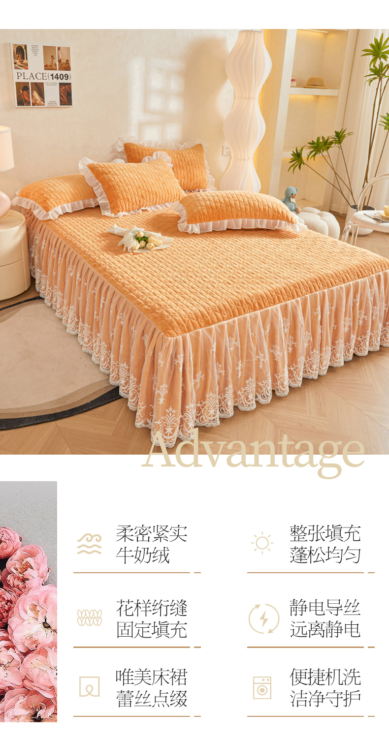 虹星家纺 2023新款牛奶绒夹棉床裙套件清新系列-床裙款单床裙 清新-吴咖