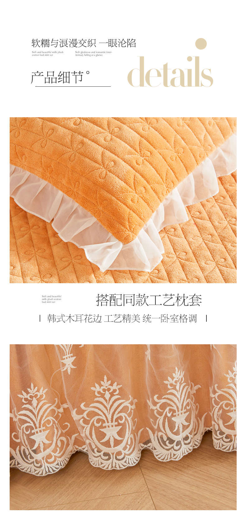 商品名称:虹星家纺 2023新款牛奶绒夹棉床裙套件清新系列-床裙款单床裙 清新-吴咖