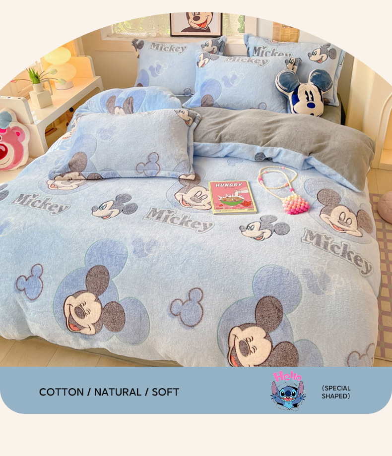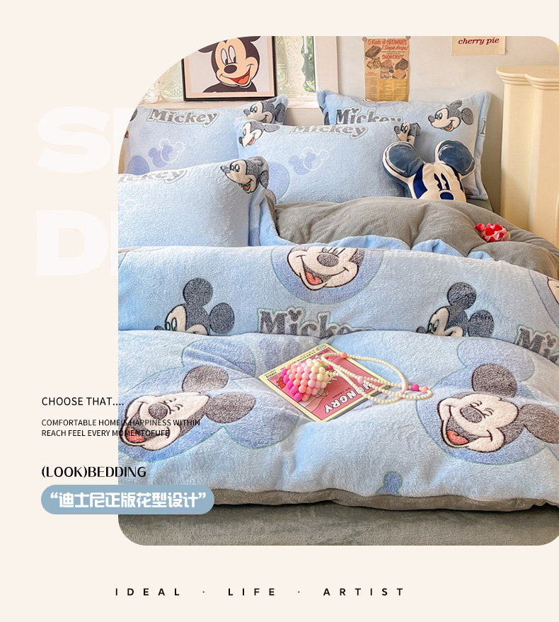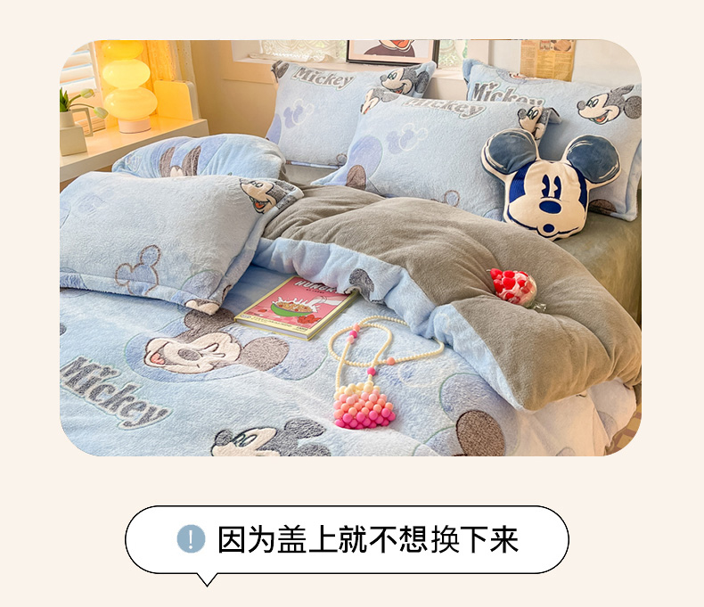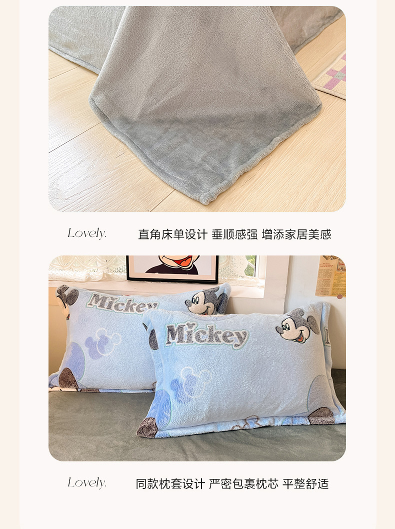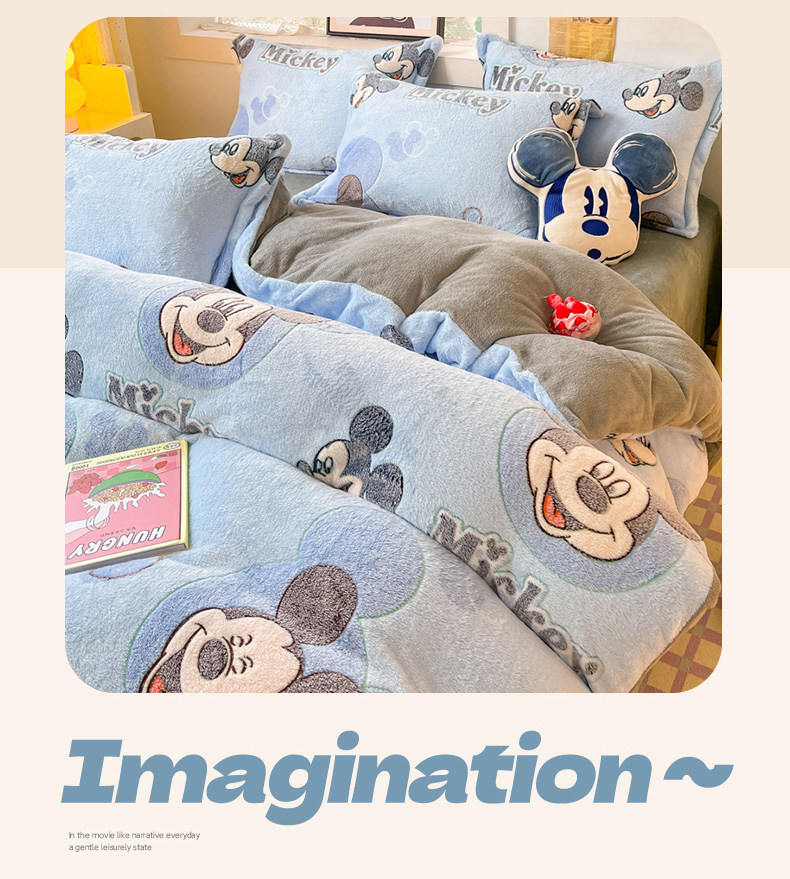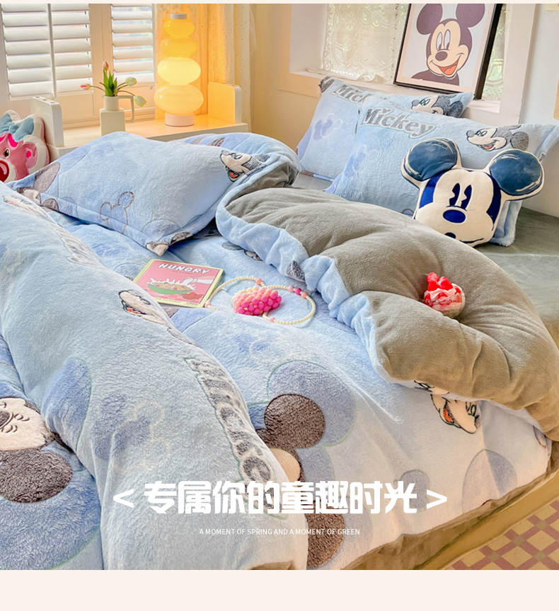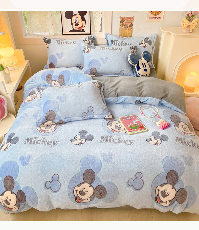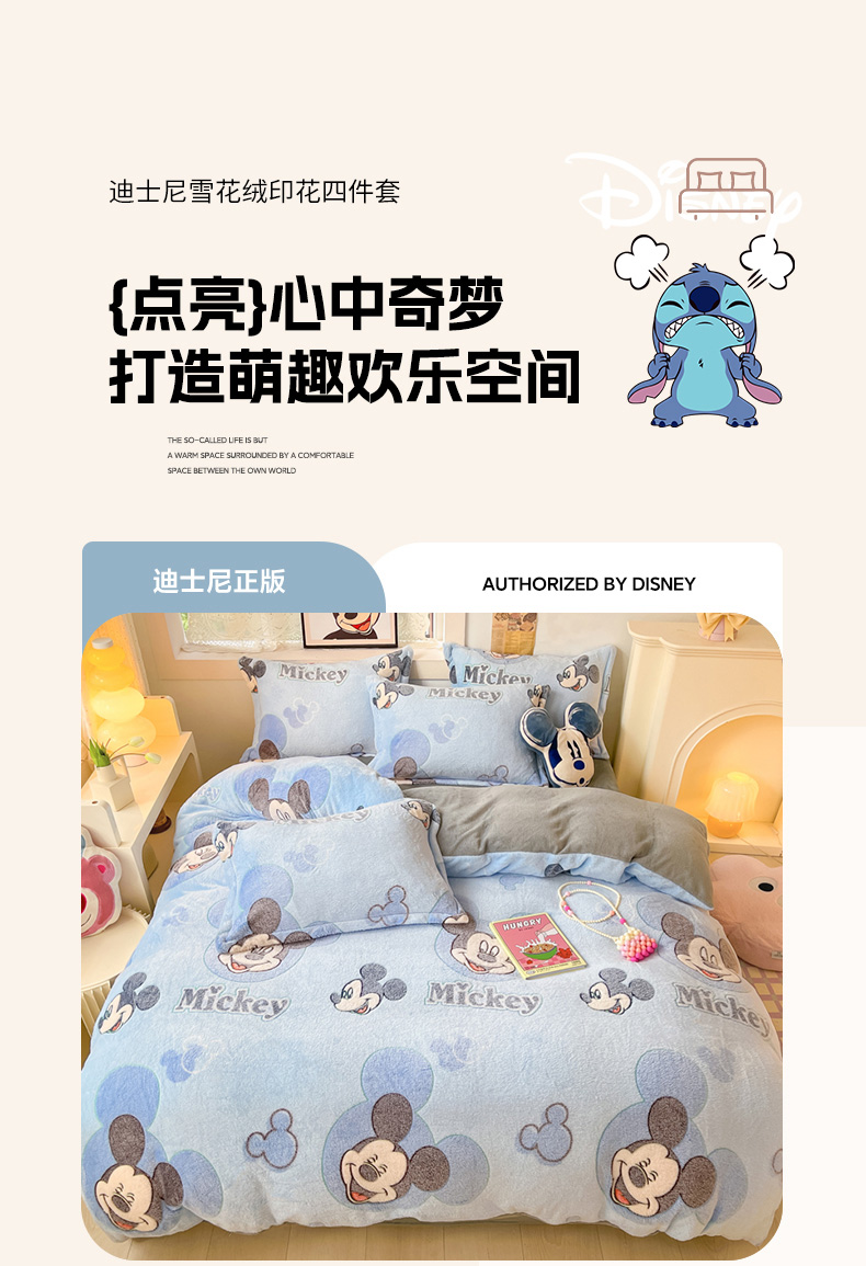 柒月家居 2023新款迪士尼雪花绒四件套 开心米奇