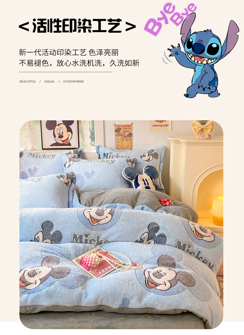 商品名称:柒月家居 2023新款迪士尼雪花绒四件套 开心米奇