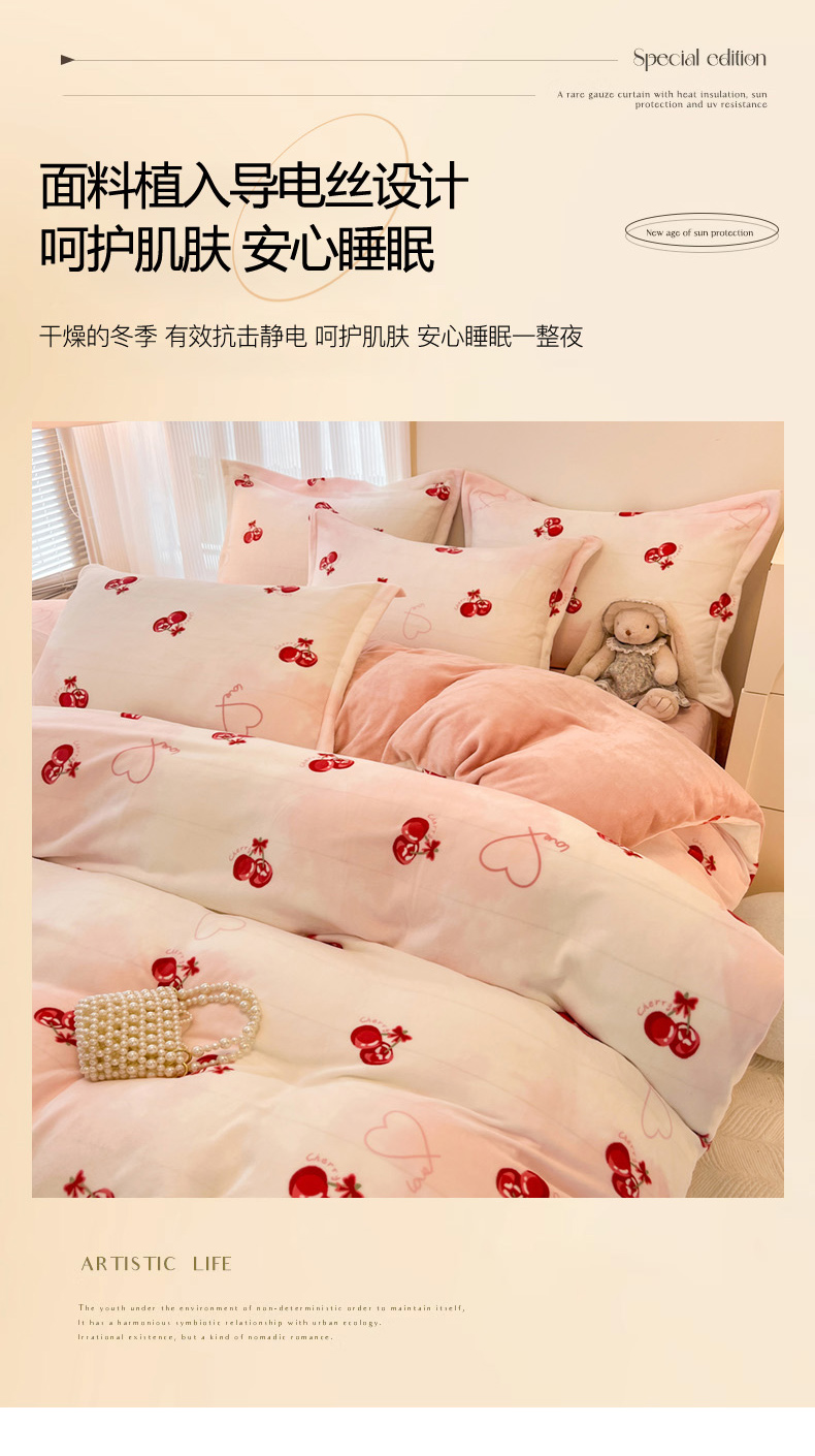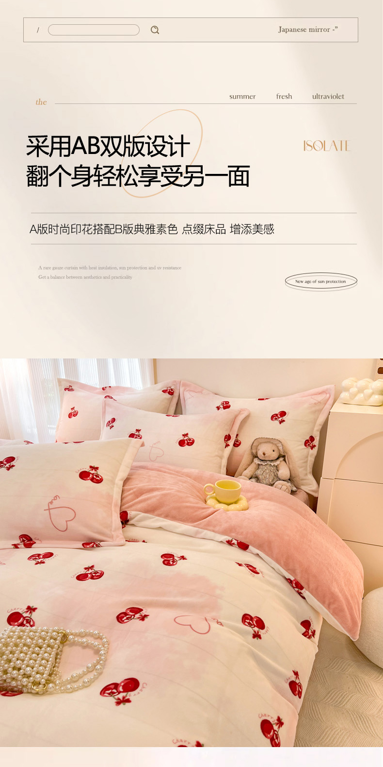 当前位置: 91家纺网 > 商品网购 > 床品套件 > 四件套 > 牛奶绒四件套 > 寐居家纺 2023新款小清新牛奶绒印花四件套 甜心樱桃