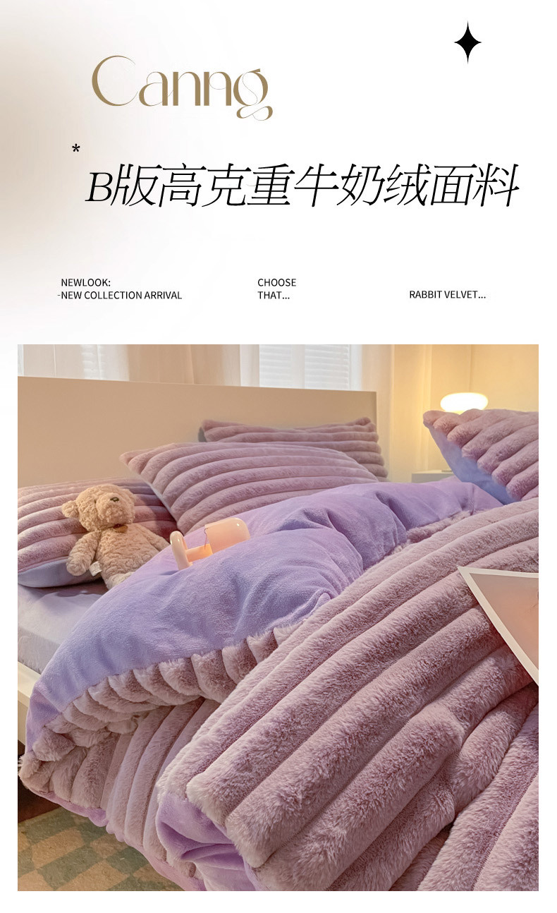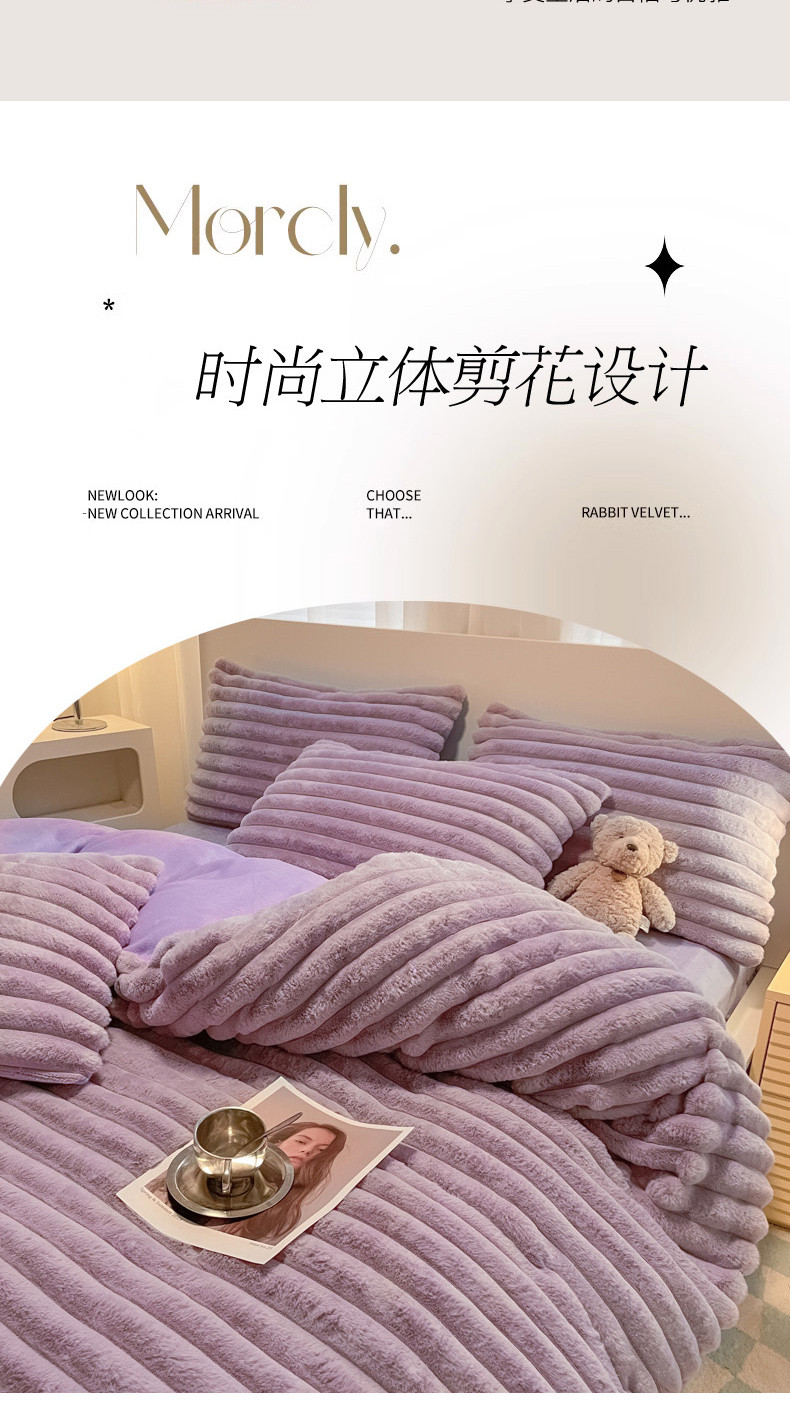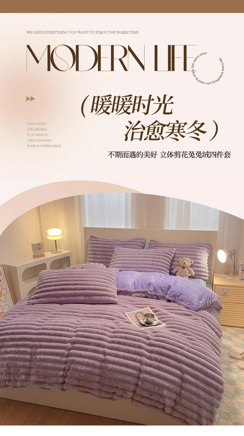 当前位置: 91家纺网 > 商品网购 > 床品套件 > 四件套 > 兔毛绒四件套 > 柒月家居 2023新款兔兔绒四件套 兔兔绒-紫