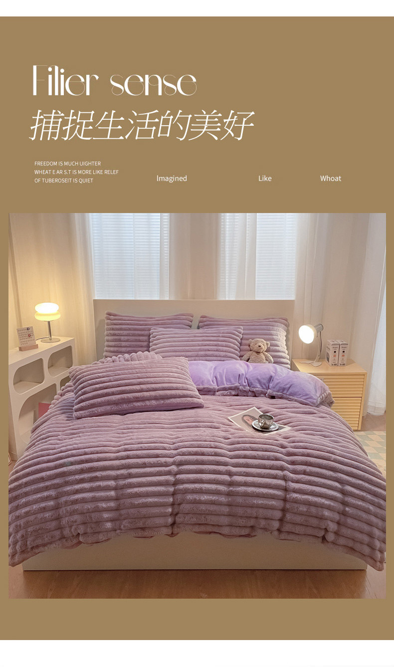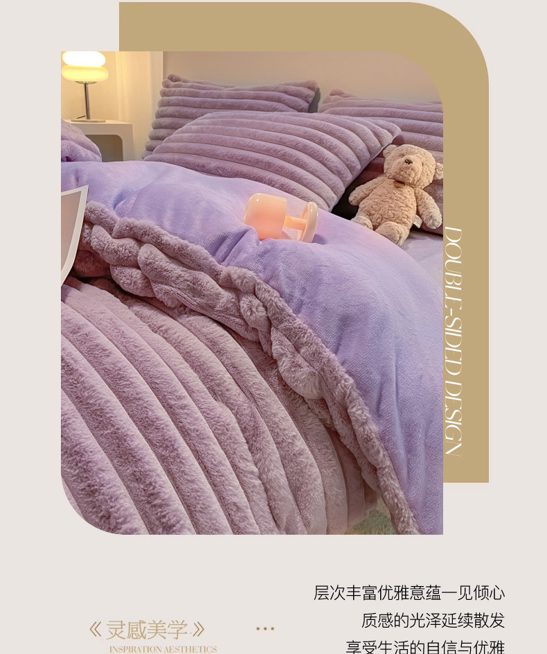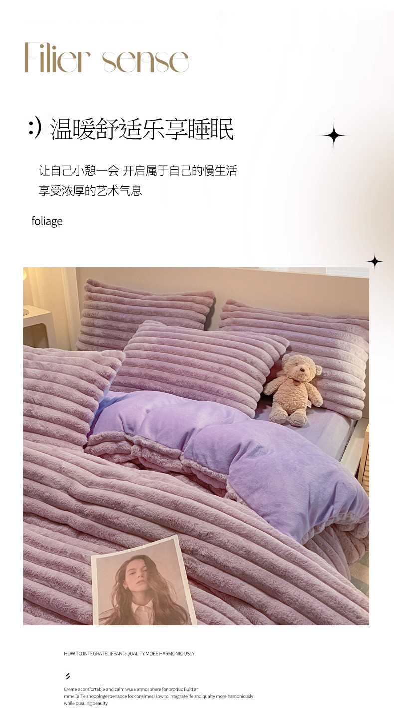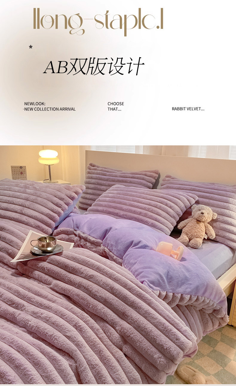 当前位置: 91家纺网 > 商品网购 > 床品套件 > 四件套 > 兔毛绒四件套 > 柒月家居 2023新款兔兔绒四件套 兔兔绒-紫