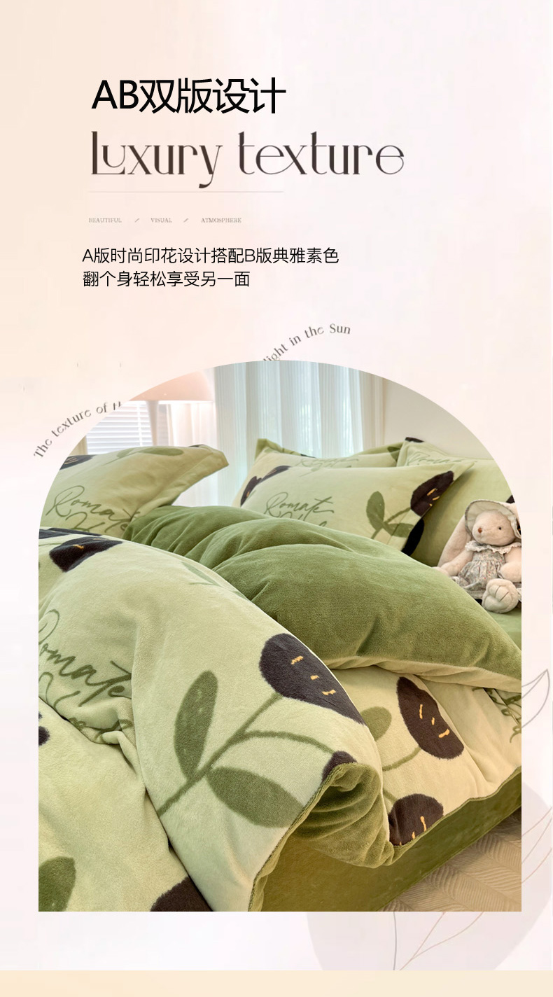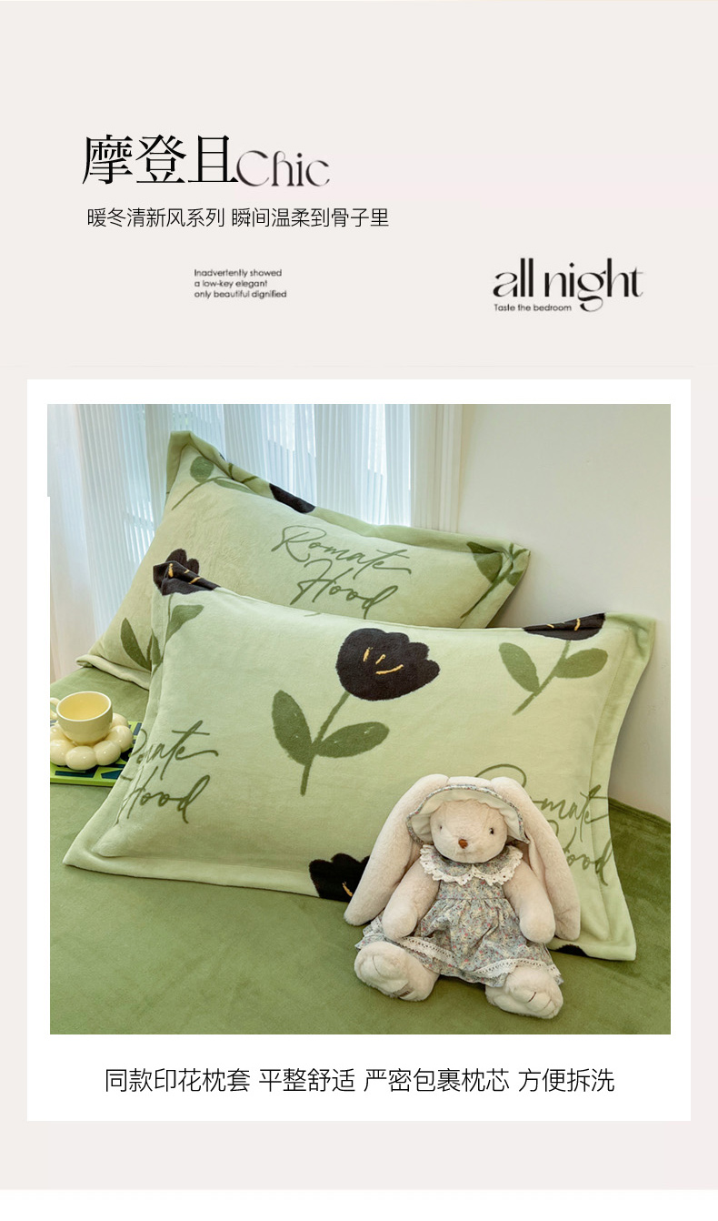 寐居家纺 2023新款小清新牛奶绒印花被套 花漫绿