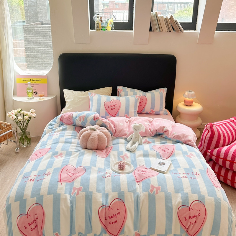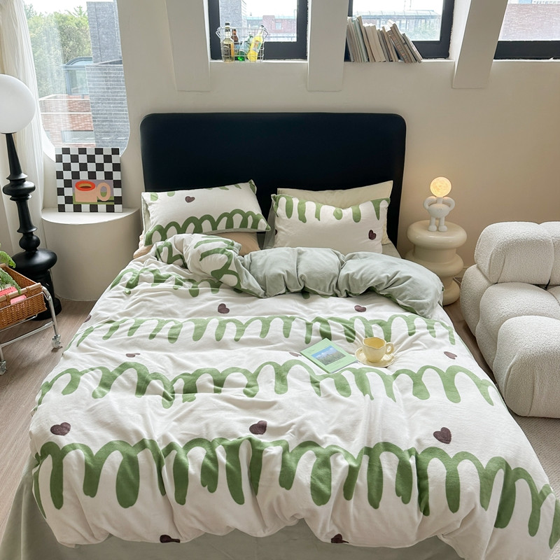 (总)柚子YOUTH 225新款全棉双层纱球球款四件套,薄荷绿条,波点霉霉,波点小丑,蓝心,芊芊结,碎花点点