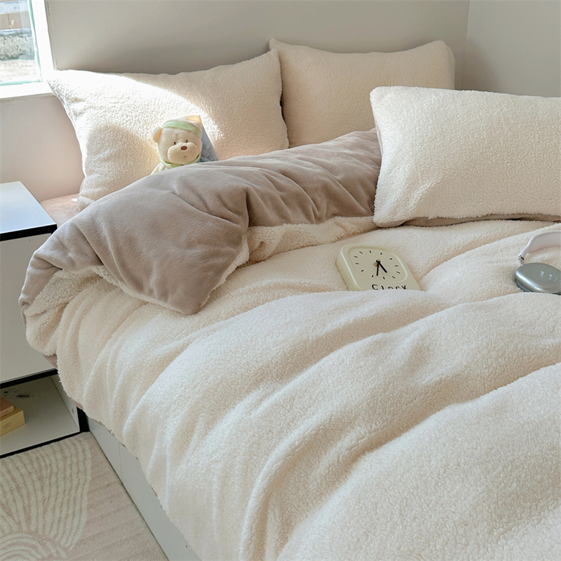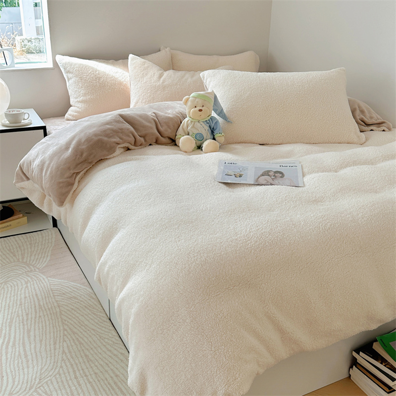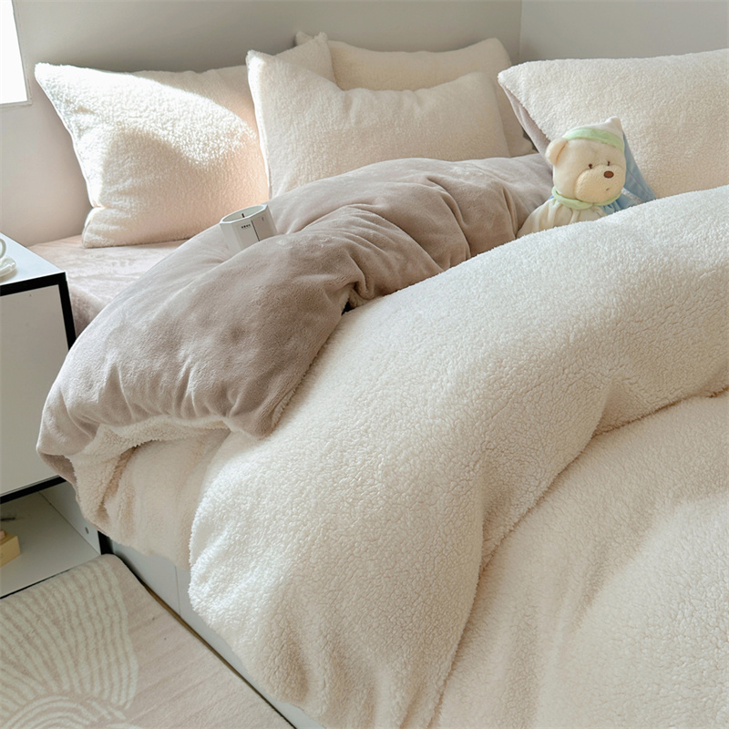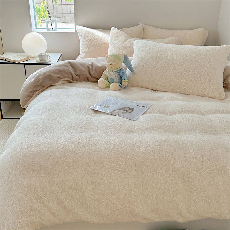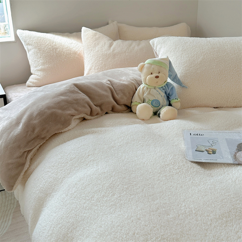 商品名称:顾里家纺 2023新款ins牛奶羊羔绒四件套 羊羔咖
