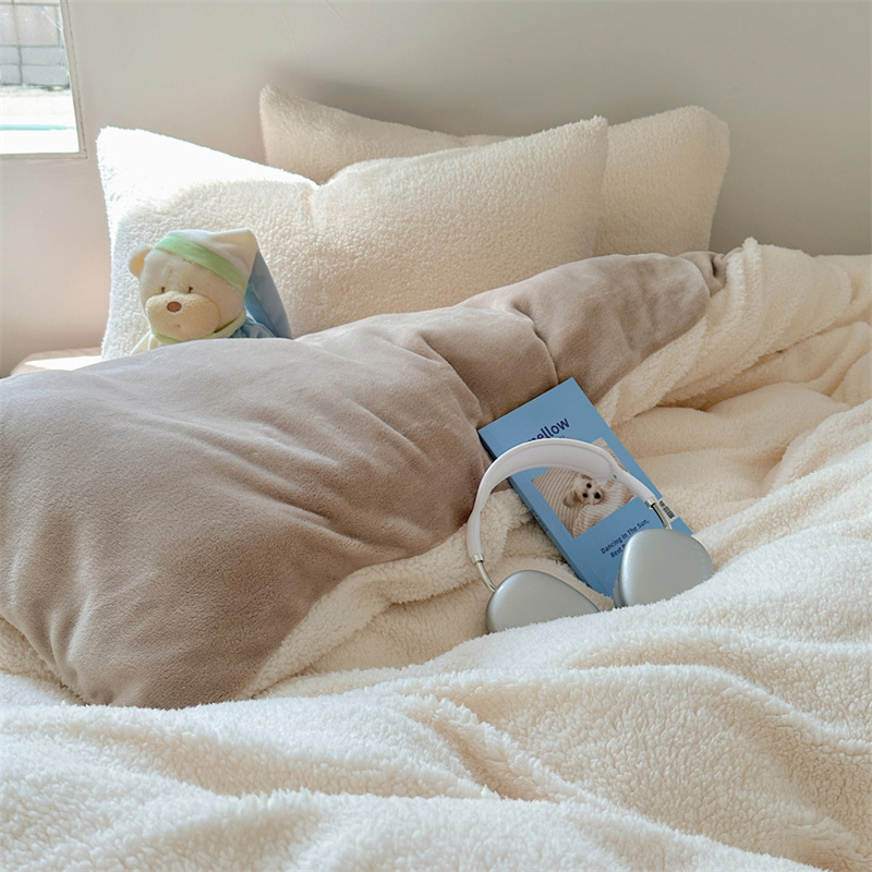 顾里家纺 2023新款ins牛奶羊羔绒四件套 羊羔咖