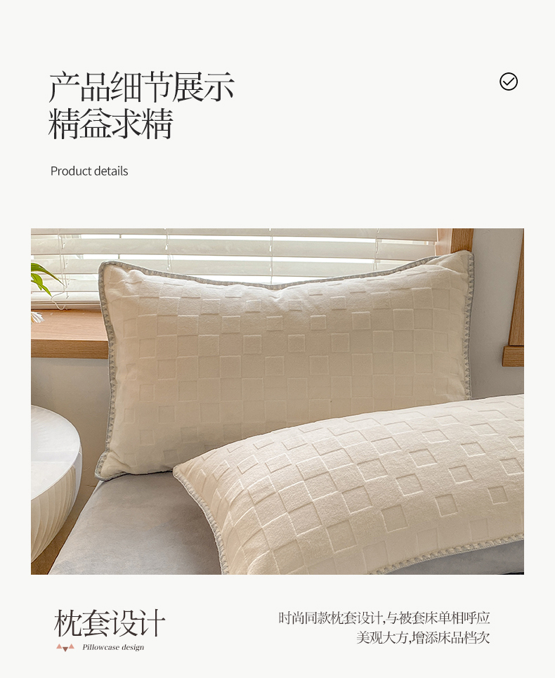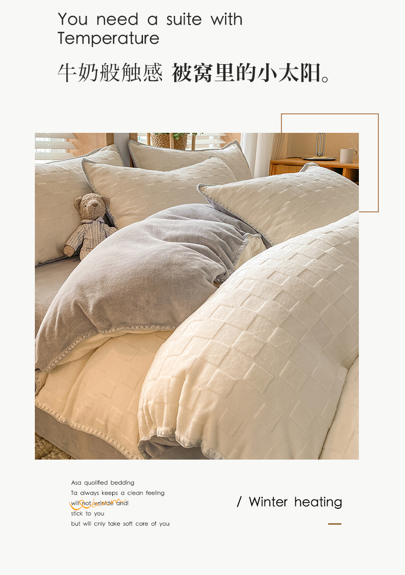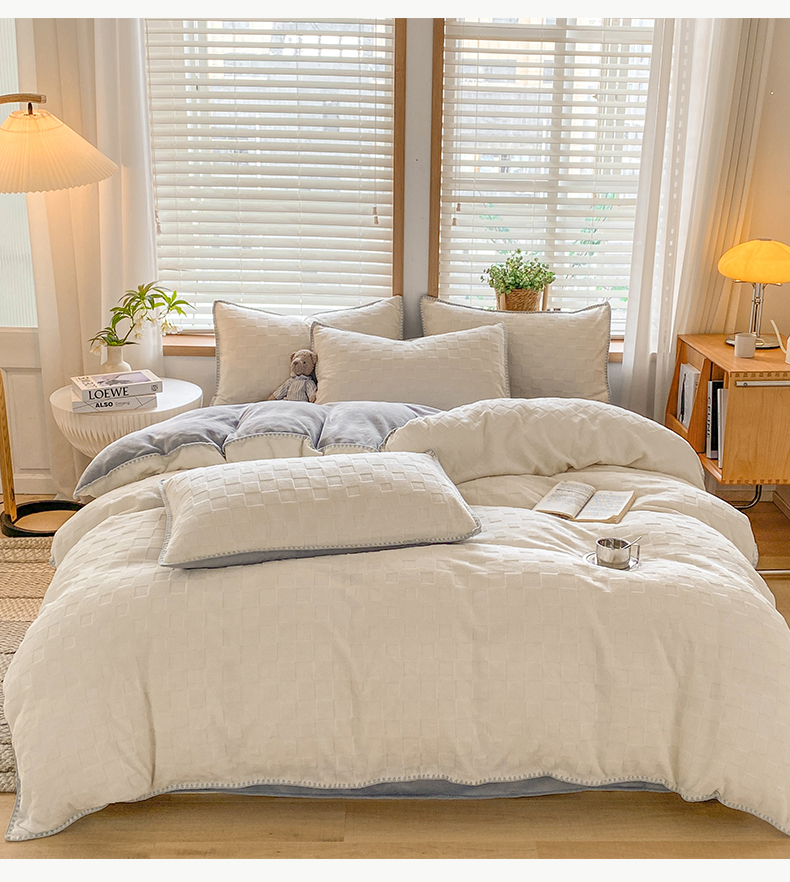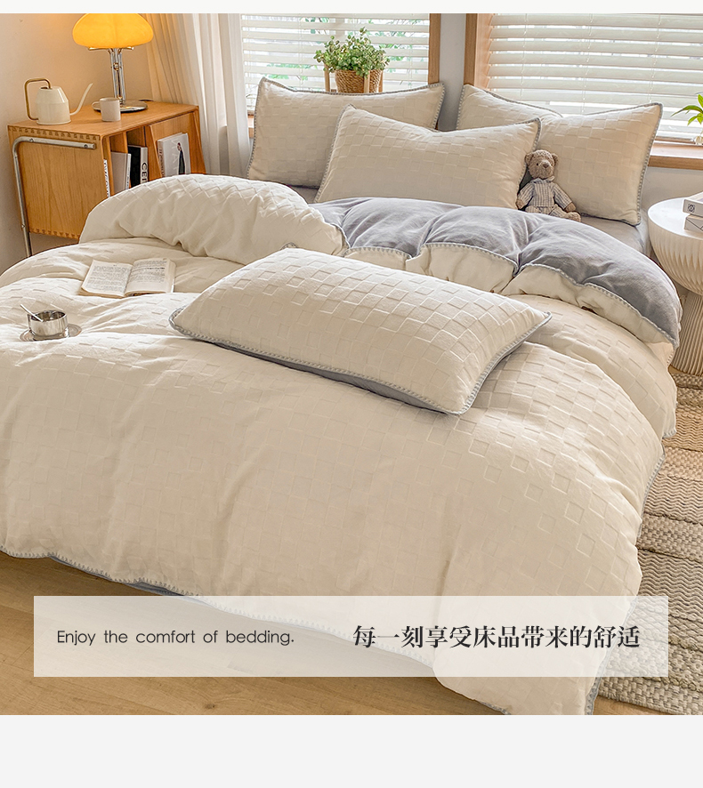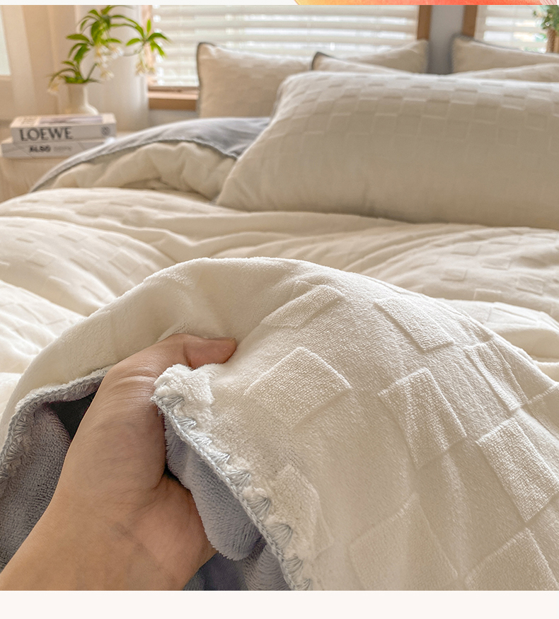 A类烂花雕花高克重加厚牛奶绒四件套三角贝壳边工艺 西尔