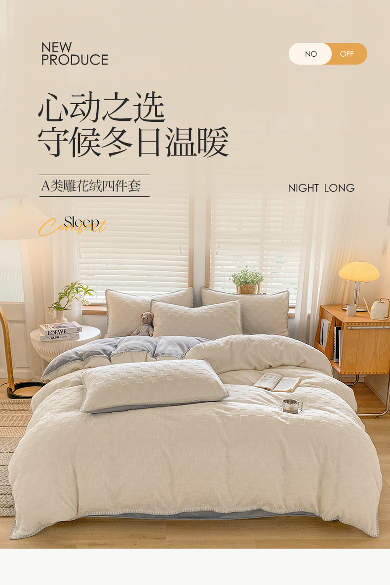 (总)简如 2025新款A类230克加厚立体雕花绒四件套,安吉拉-粉玉,安吉拉-海鸥灰,安吉拉-浅灰,安吉拉-浅绿,安吉拉-天空蓝,米兰-粉,米兰-米驼,米兰-玉,米兰-中灰