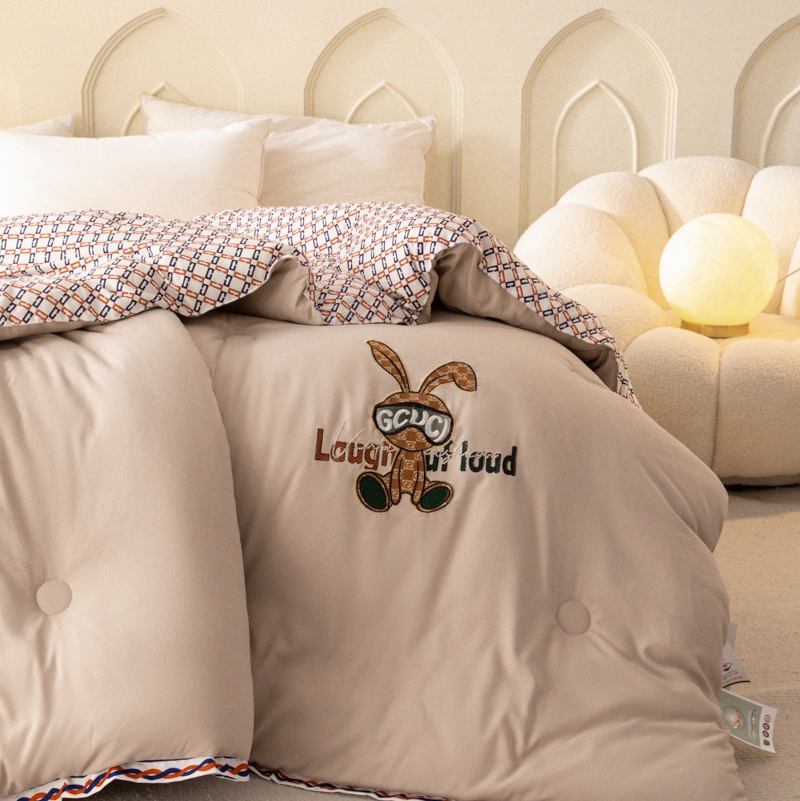 伊人居 2023新款古驰兔刺绣大豆被春秋被冬被【直播,电商爆款】【来量定做】 卡棕色