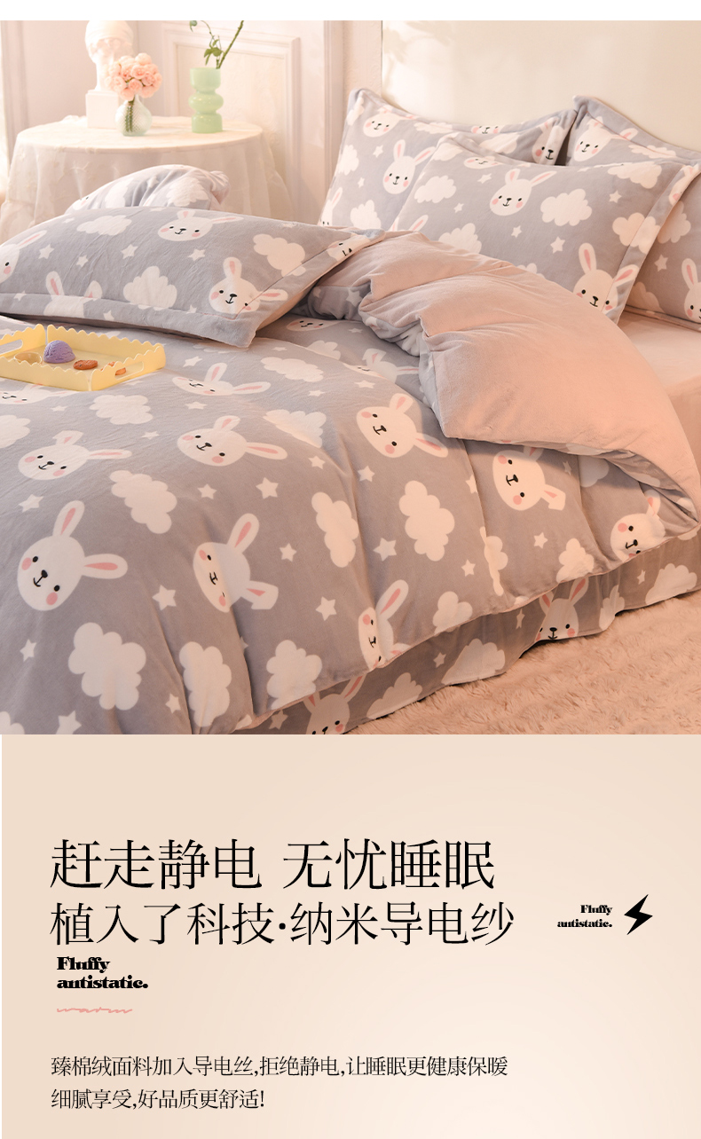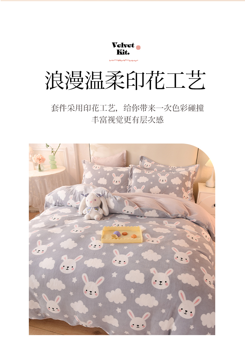 商品名称:简如 2025新款冰岛臻绵绒印花系列单被套牛奶绒单被套 菲菲兔
