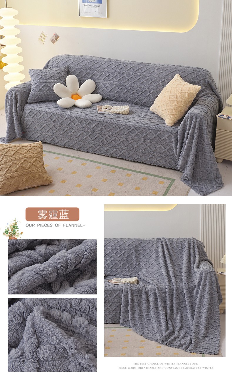 当前位置: 91家纺网 > 商品网购 > 居家布艺 > 坐垫/椅垫/沙发垫 > 沙发垫 > 启博 2023新款纯色提花绒沙发巾 雾霾蓝
