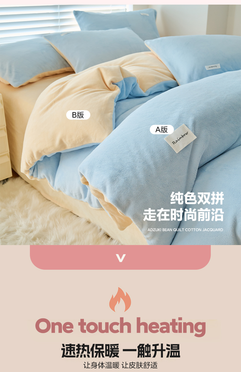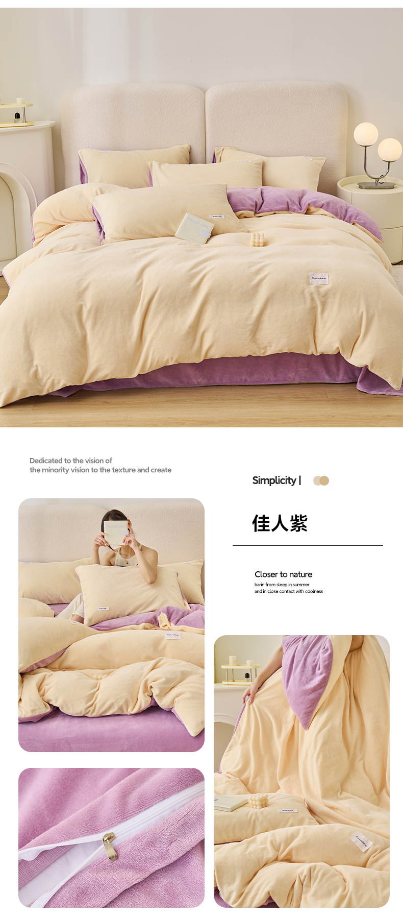 (总)晨曦 2023新款ins简约风牛奶绒双拼四件套可拆洗冬被