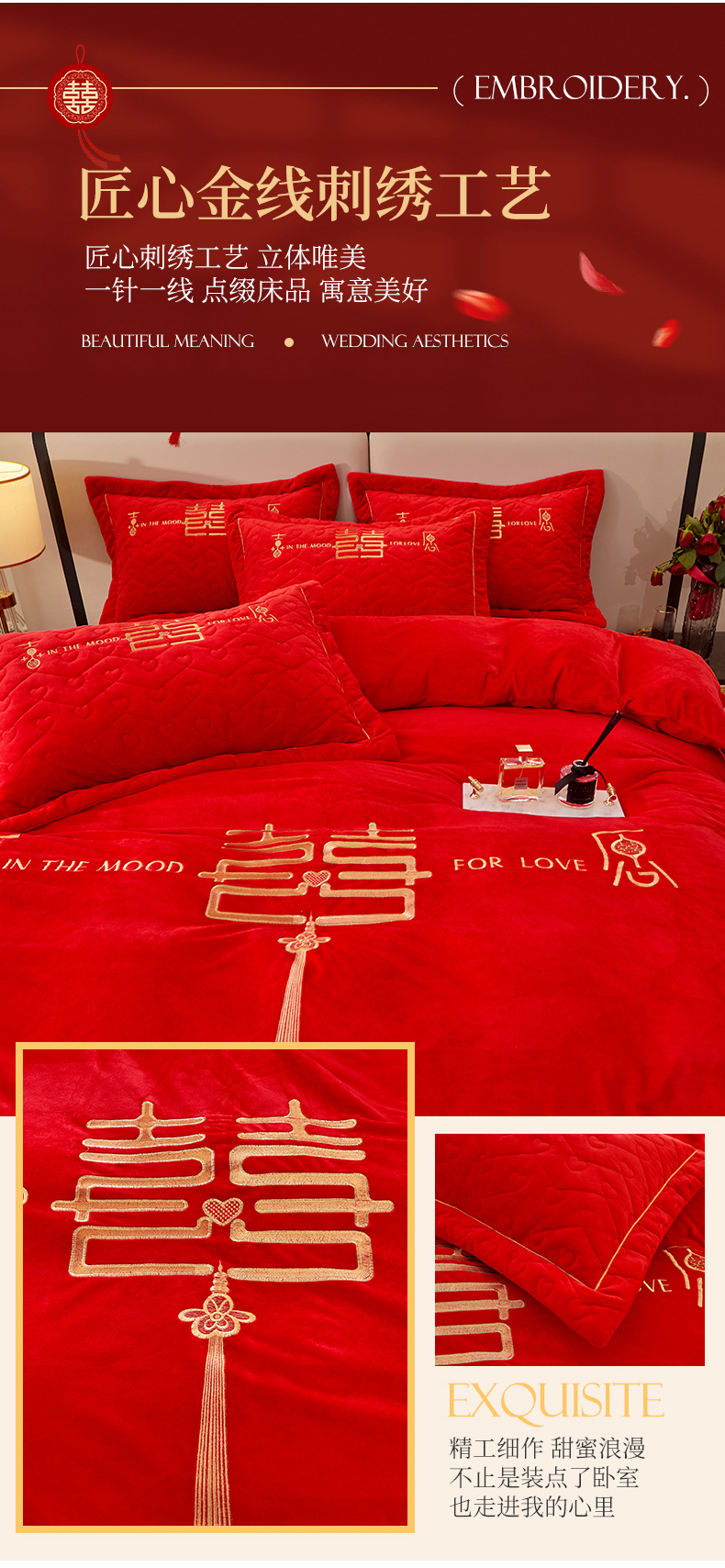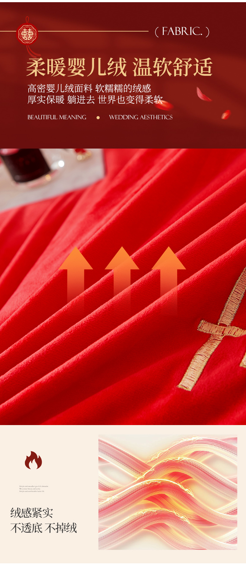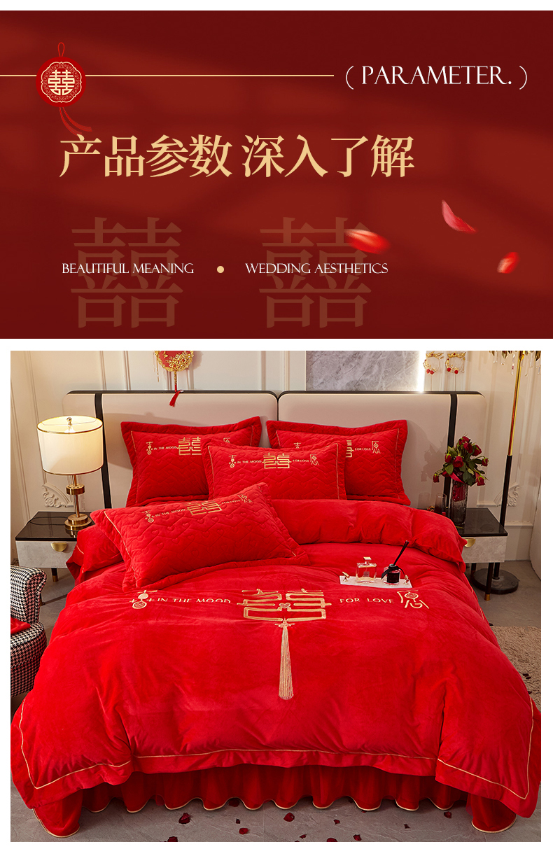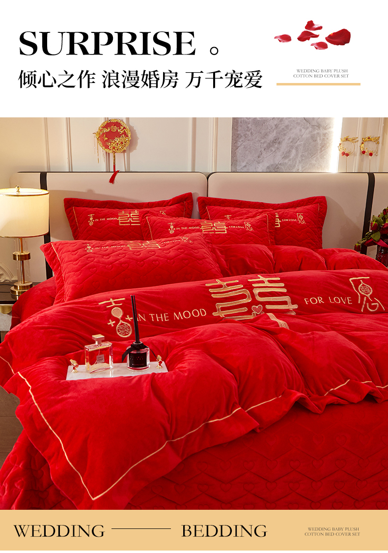 当前位置: 91家纺网 > 商品网购 > 床品套件 > 四件套 > 婚庆四件套 > 宜凡家纺 2023秋冬新品婴儿绒婚庆床盖四件套 秦晋之好