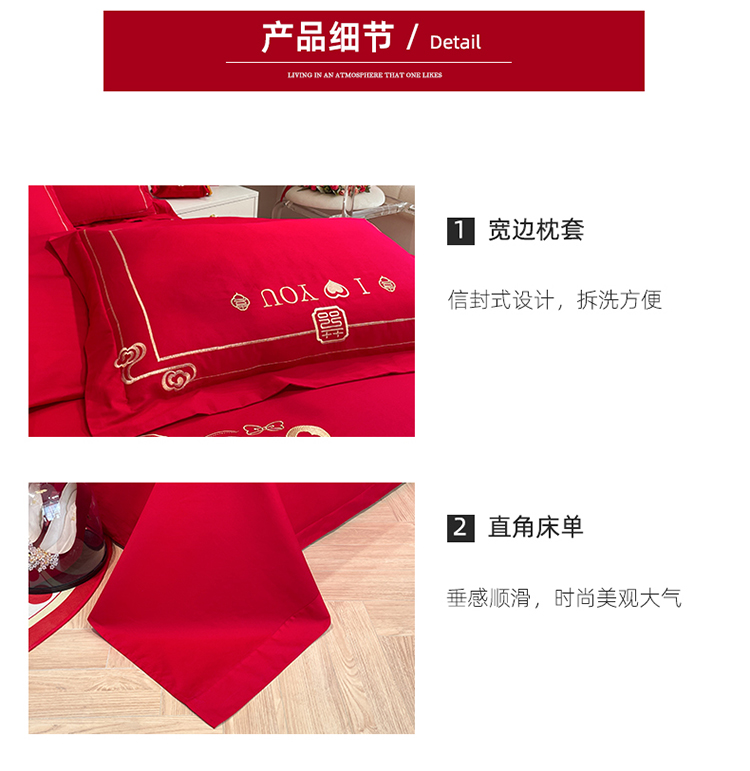 当前位置: 91家纺网 > 商品网购 > 床品套件 > 四件套 > 婚庆四件套 > 玉雅家纺 2025新款亲肤刺绣婚庆四件套满心欢喜