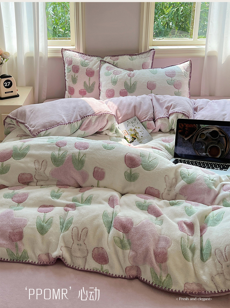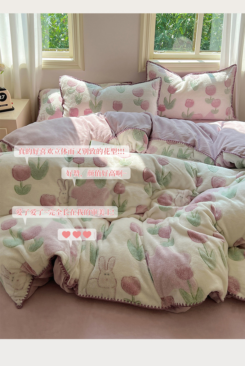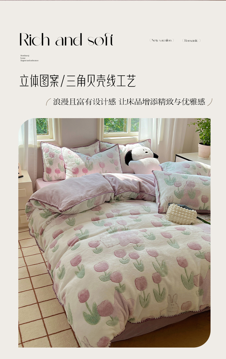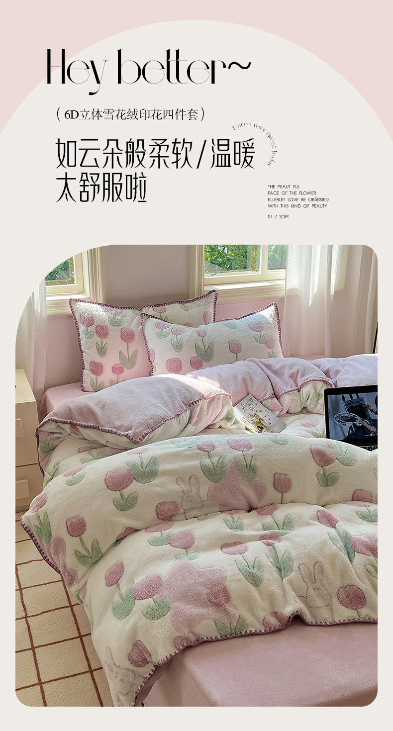 三朵家纺 2023新款高克重雪花绒绒混搭系列四件套 花语