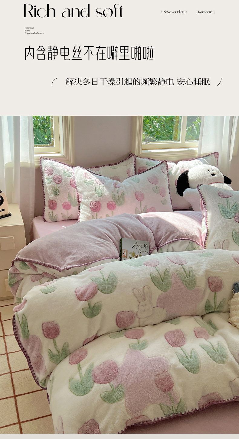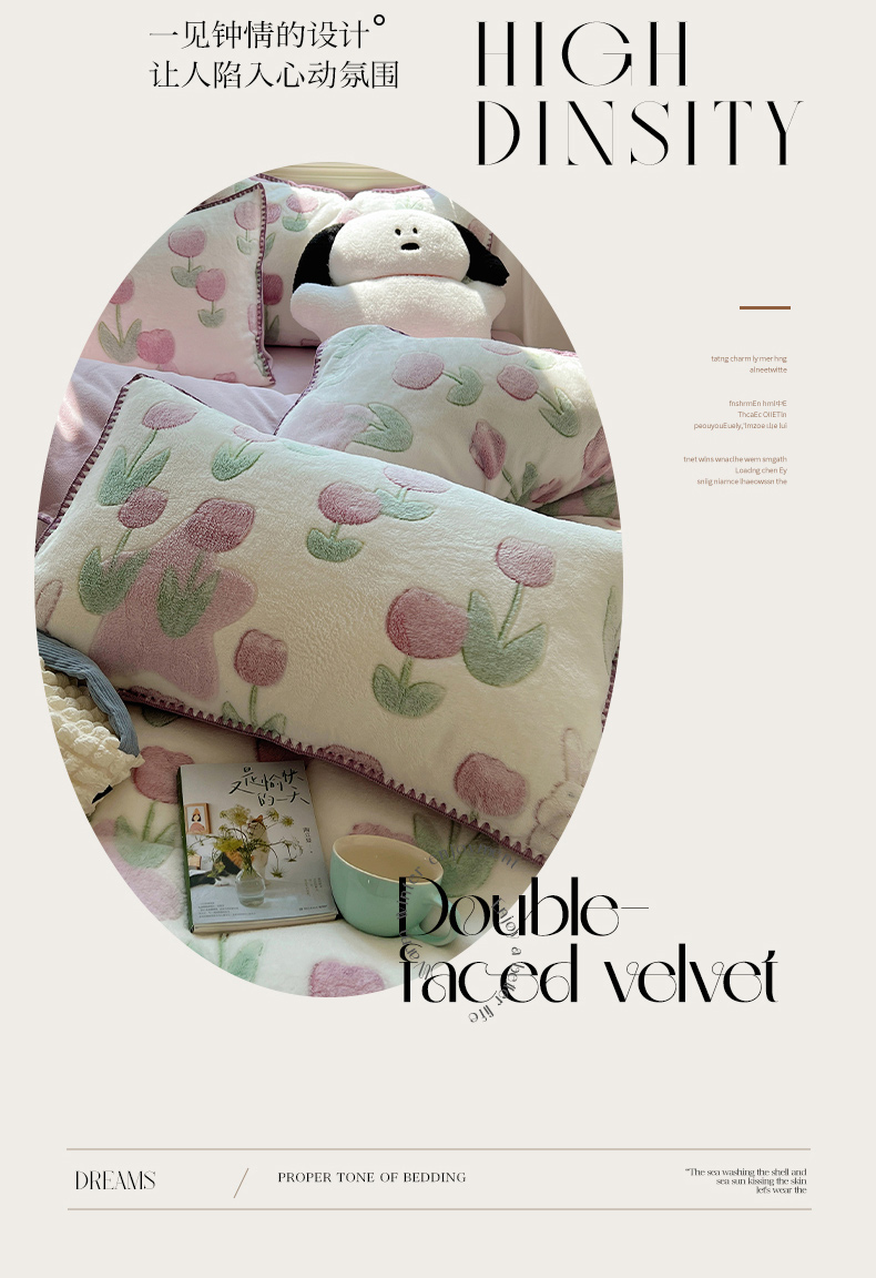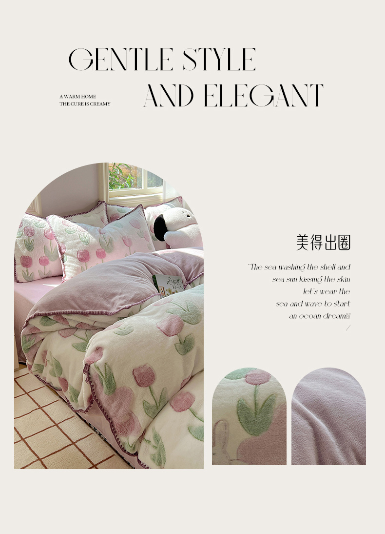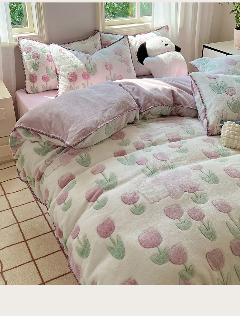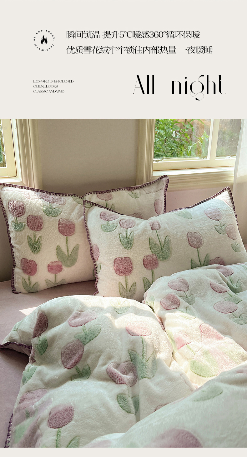 三朵家纺 2023新款高克重雪花绒绒混搭系列四件套 花语