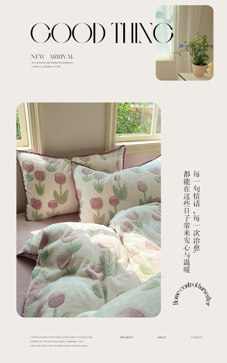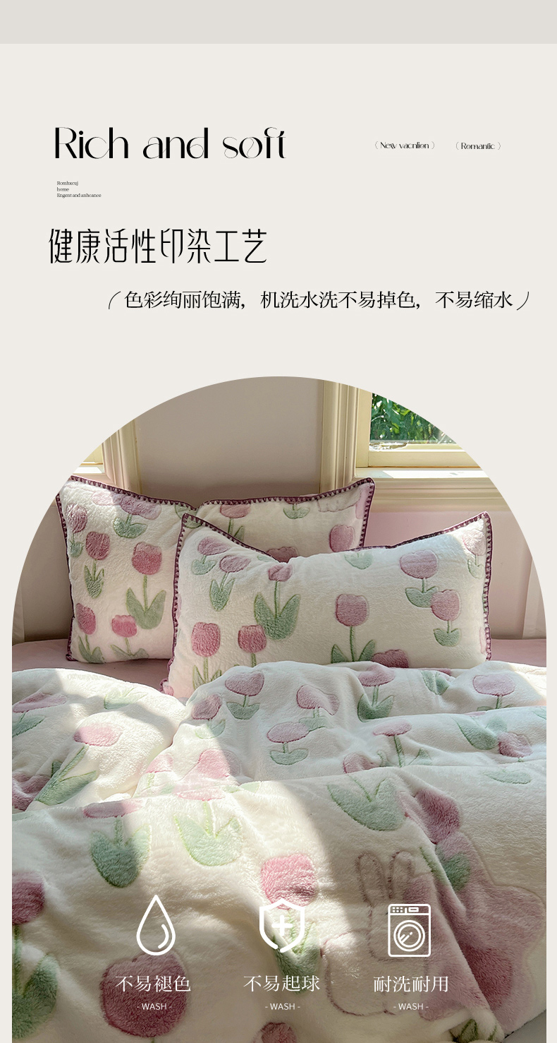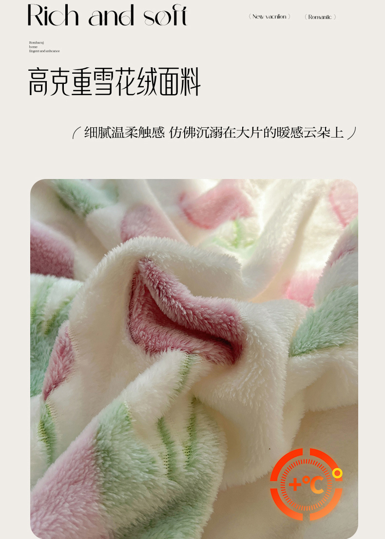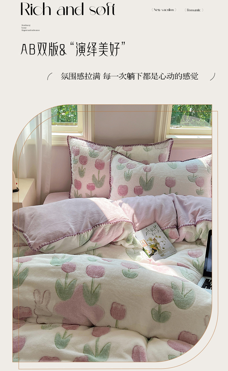 三朵家纺 2023新款高克重雪花绒绒混搭系列四件套 花语